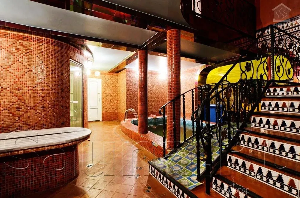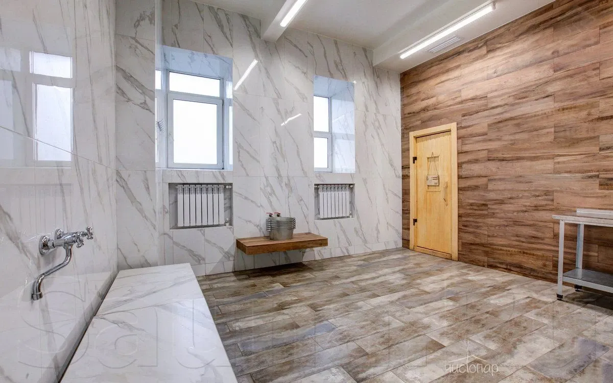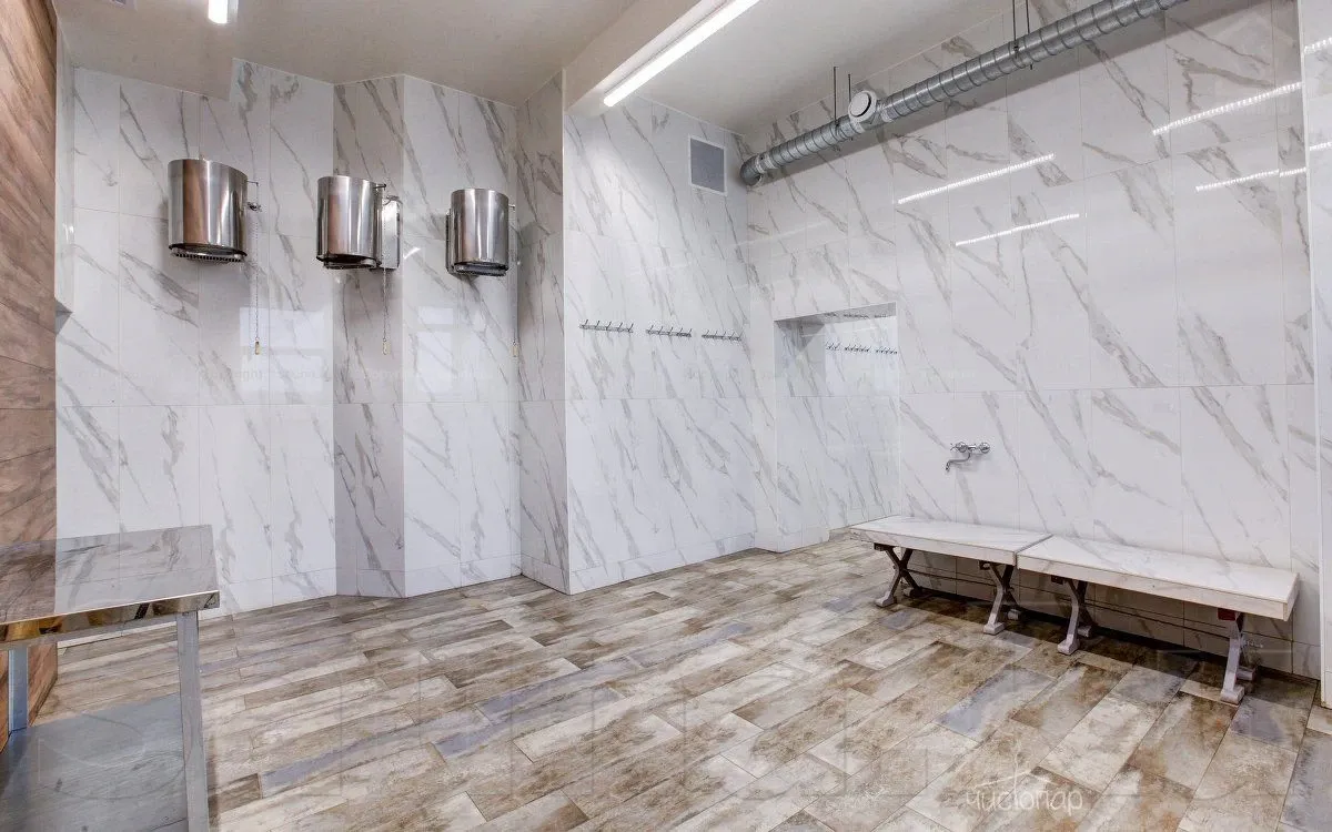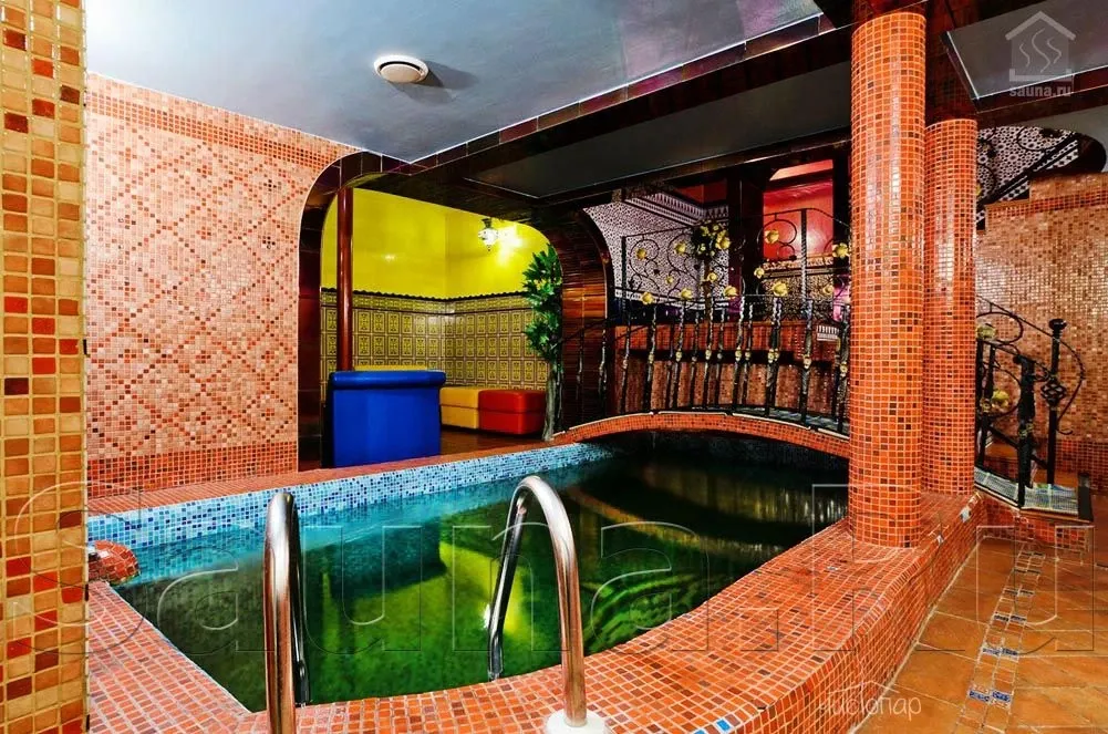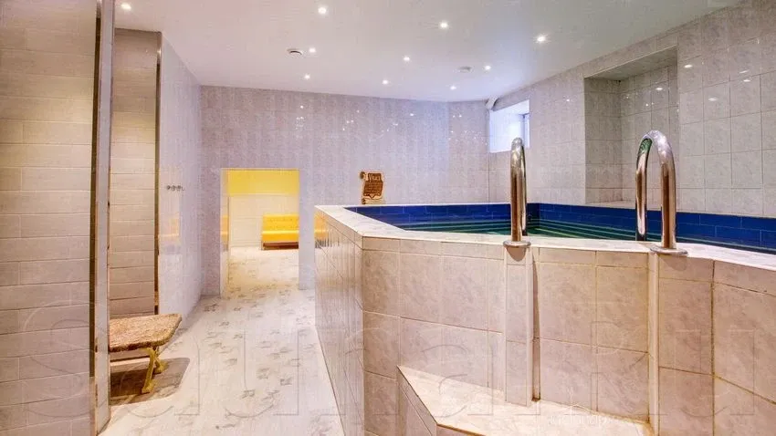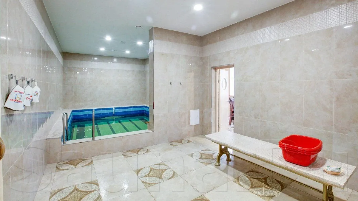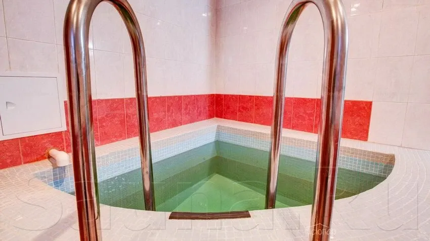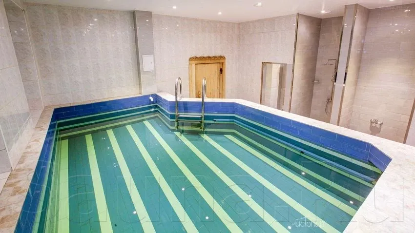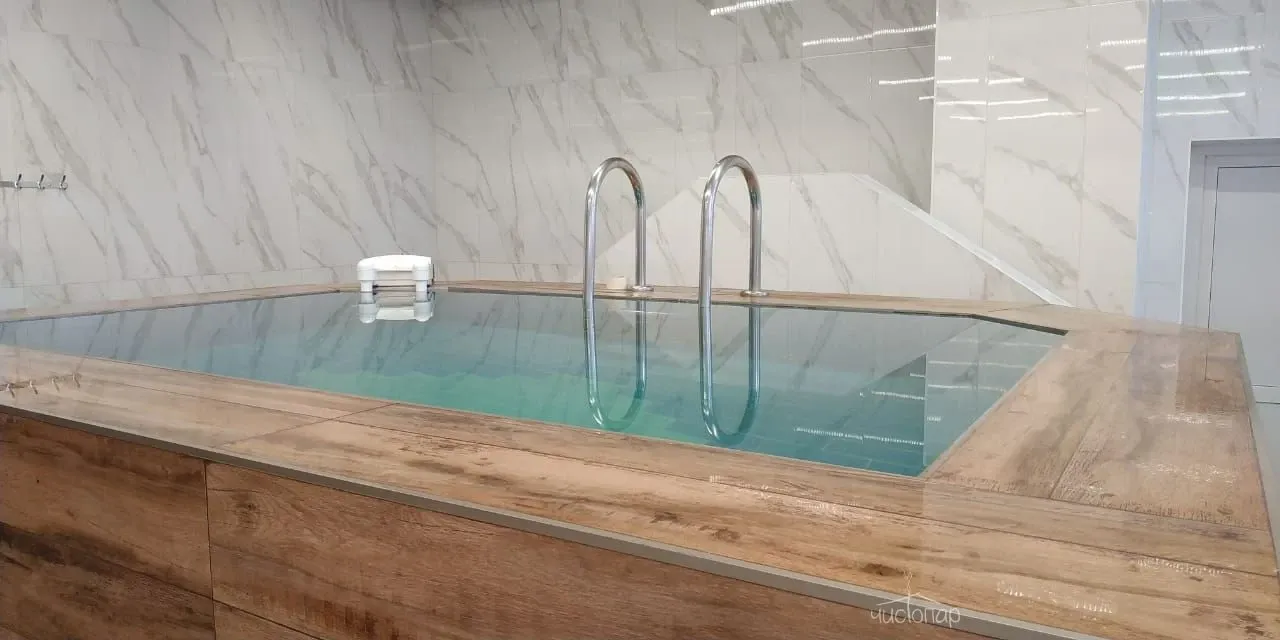 Аква зона: Бассейн 5х3 метра с проточной водой, душевая кабина и мраморный массажный стол.
