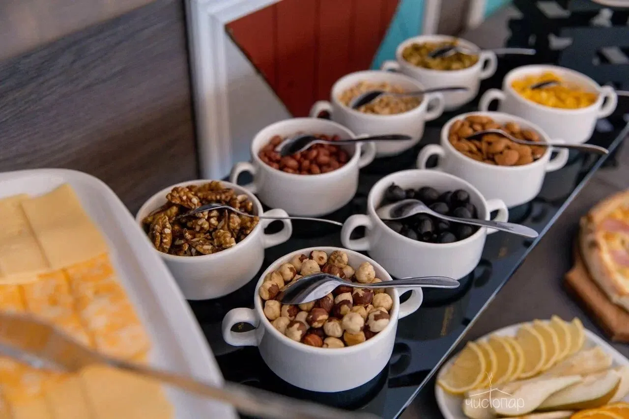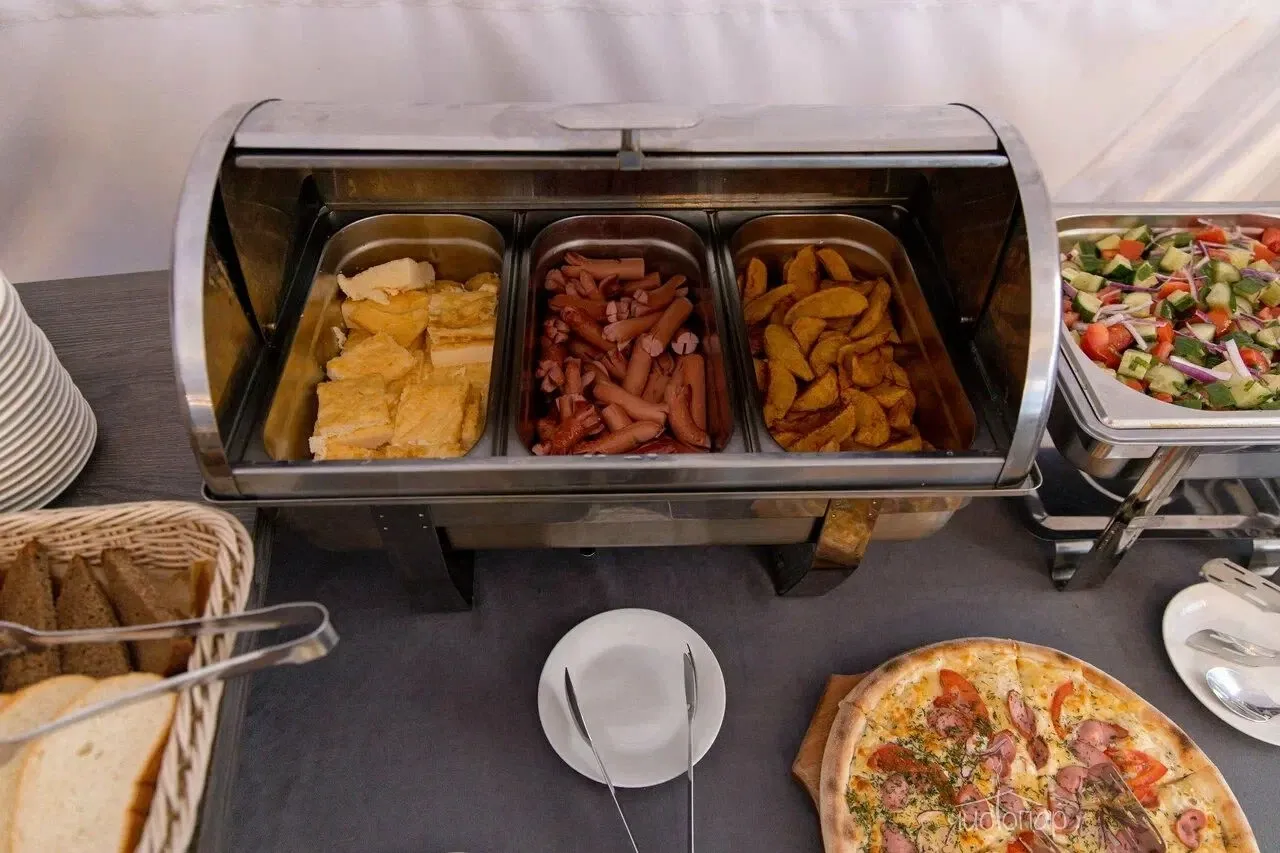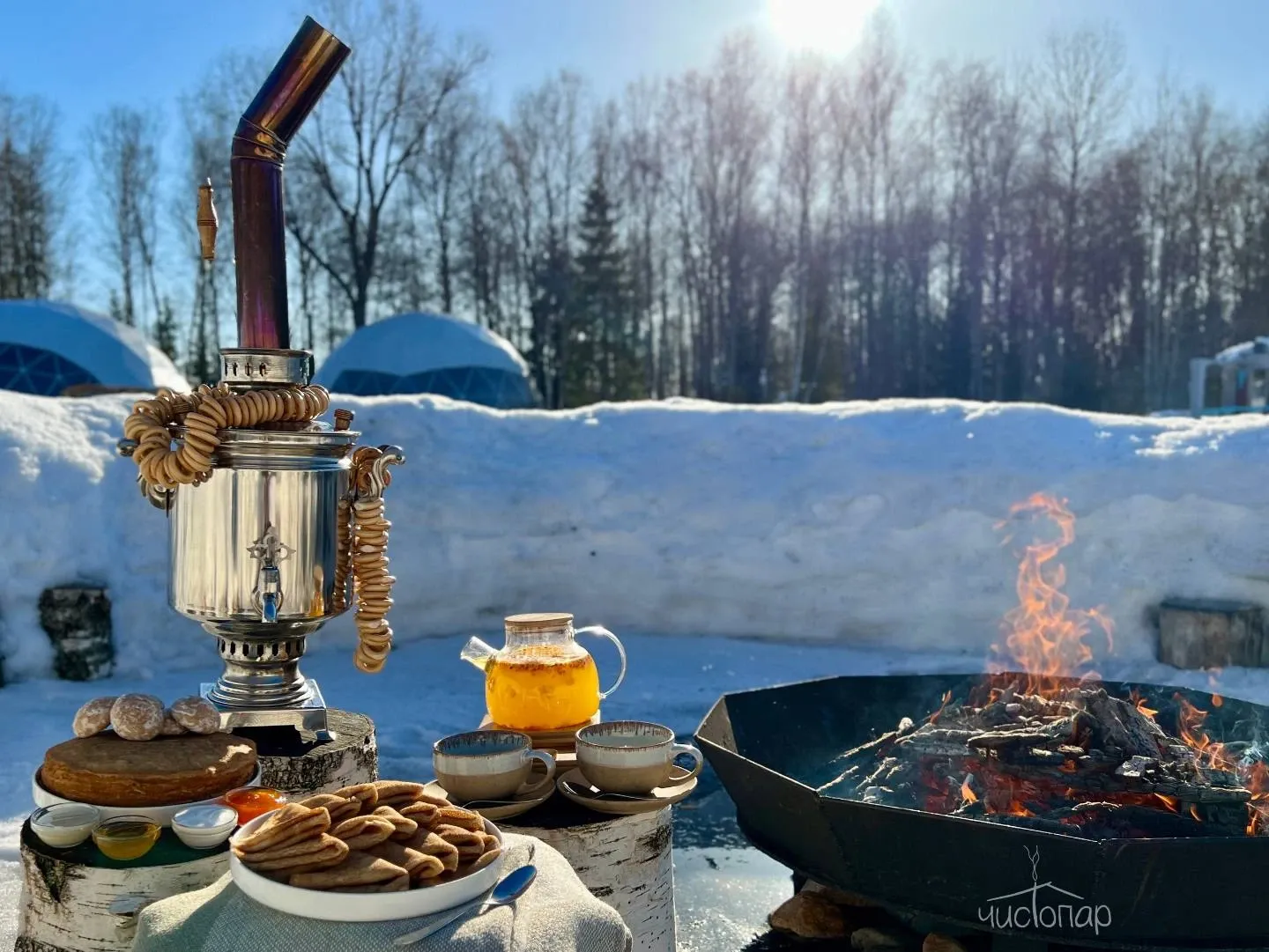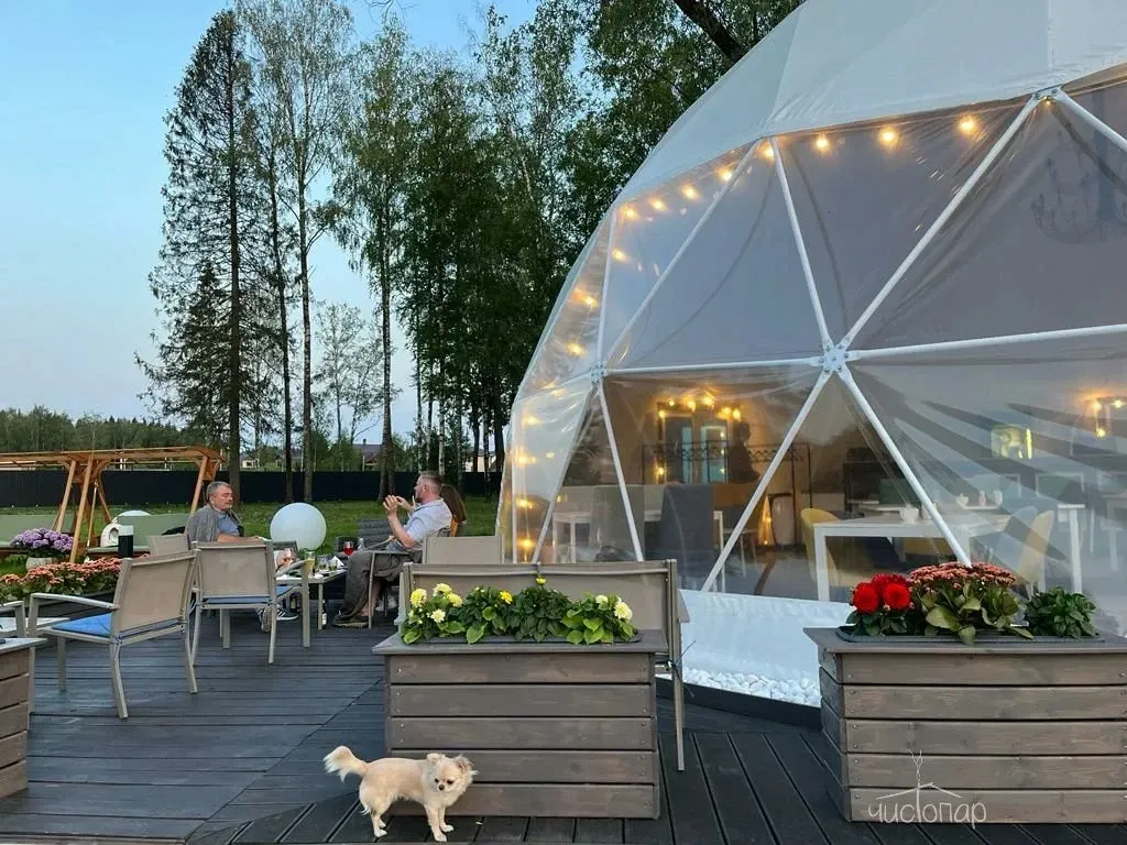 На территории работает купольный ресторан с разнообразными блюдами от шеф-повара, которые также можно заказать и в номер. Есть возможность самостоятельно приготовить барбекю. Помимо этого, в апартаментах имеется чайник, посуда и столовые приборы, а в отдельных категориях есть кухня со всей необходимой техникой для комфортной готовки.