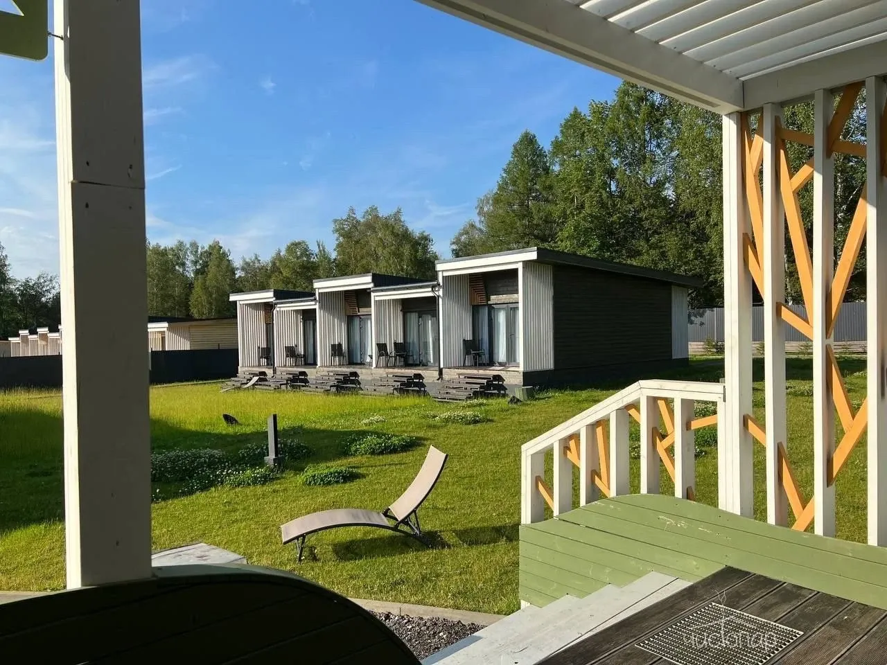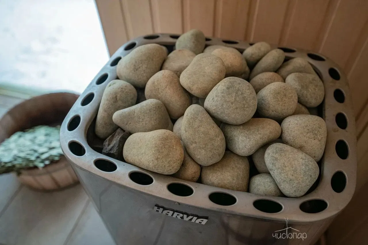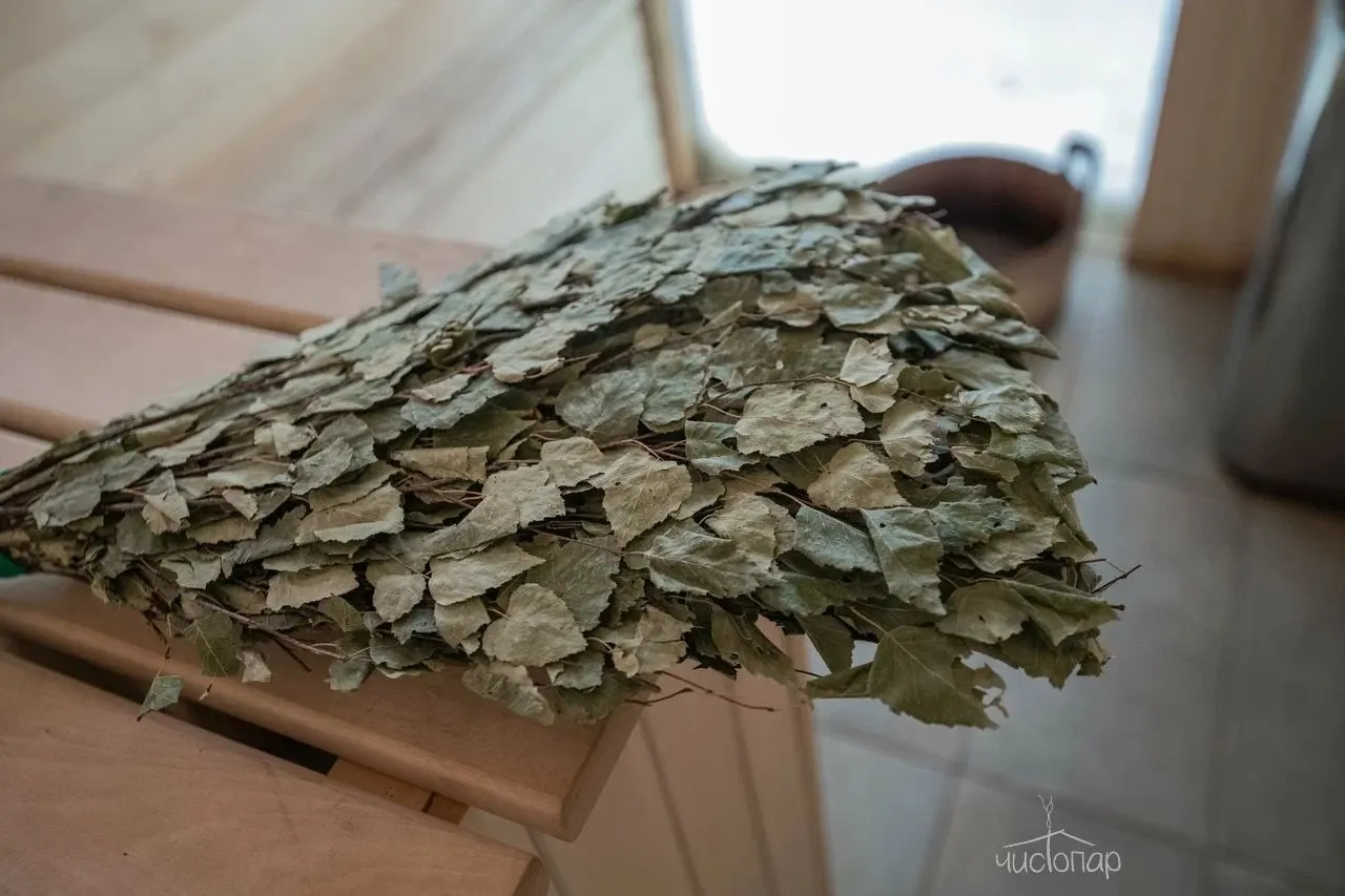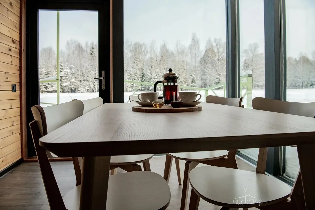 Финская сауна на 6 человек с панорамным видом на пруд, комнатой отдыха с массажным столом. Можно заказать услуги скрабирования или массажа.
