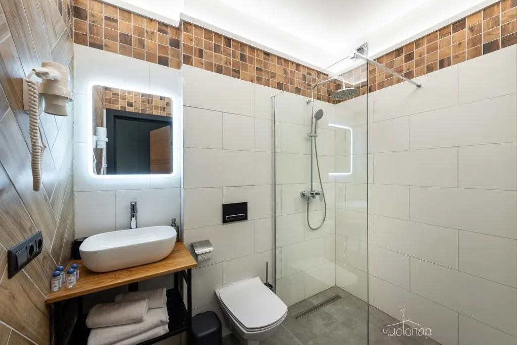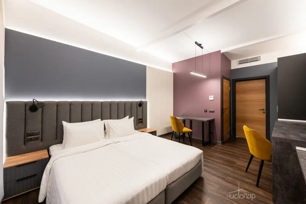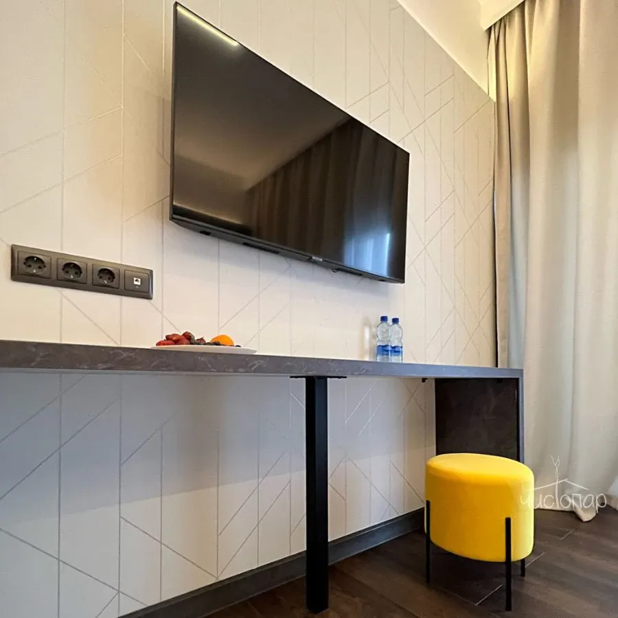 Однокомнатный номер 24-27 кв.м. в составе таунхауса, с удобной кроватью, небольшой рабочей зоной, ванной комнатой и мини-террасой. Номер оборудован небольшой рабочей зоной или раскладным диваном (спальное место 120х200). Вы можете сообщить о предпочтениях при бронировании. Максимально возможно размещение 2 гостей. Размещение дополнительного места в номер данной категории невозможно. В этом номере есть все необходимое для полноценного отдыха: роскошная кровать размером 180х200 см с фирменными матрасами и белоснежным постельным бельем, рабочий стол с комфортным освещением, набор для приготовления чая и кофе. В ванной комнате - теплый пол, фен, современная душевая и туалетные принадлежности. Вы также можете провести время на свежем воздухе, расположившись на мини-террасе с садовой мебелью и выпить чашечку утреннего кофе или бокал вина.
