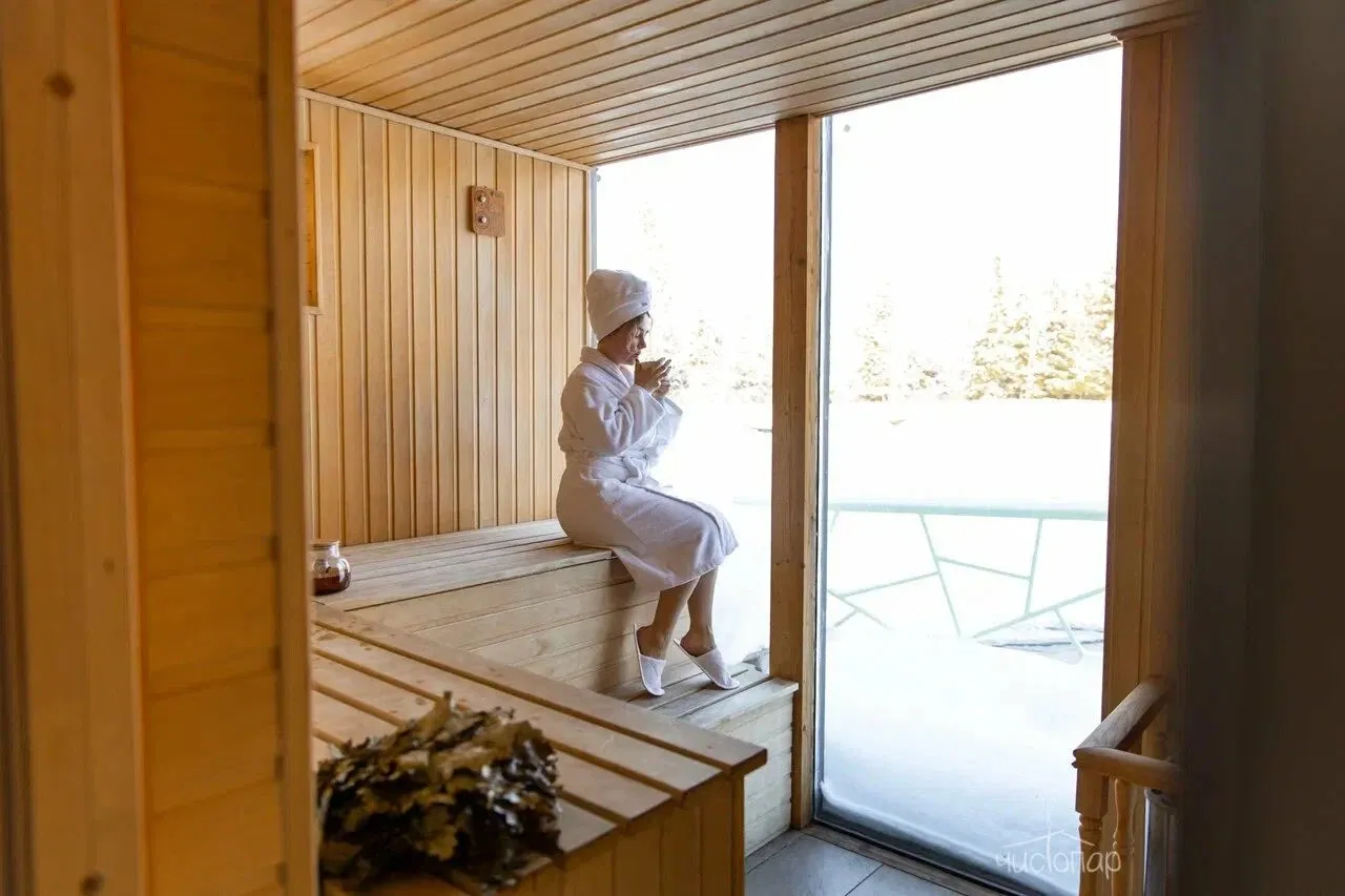 Отель предлагает гостям финскую сауну на 6 человек с панорамным видом на пруд, комнатой отдыха с массажным столом. Можно заказать услуги скрабирования или массажа.