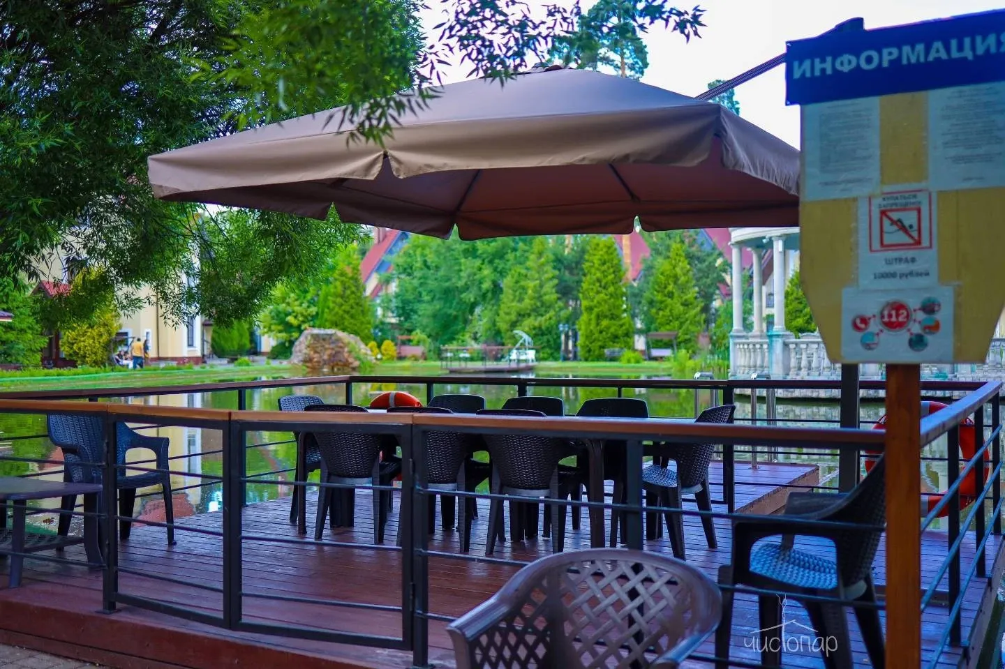 На территории парк-отеля расположены коттеджи для больших компаний, ресторан «Дворянское гнездо» с изысканной богатой кухней разных стран, русская баня, лобби-бар на 20 мест, вечно цветущий зимний сад, бильярд и другие услуги, которые сделают пребывание в парк-отеле максимально комфортным.