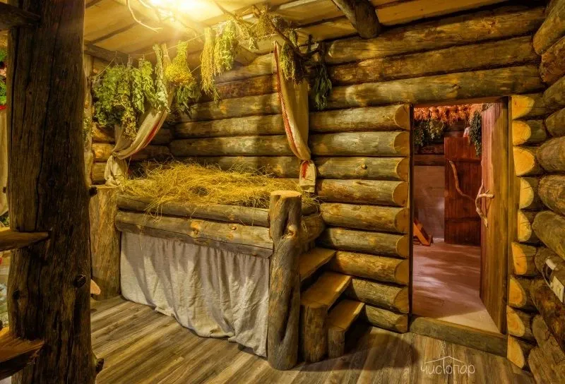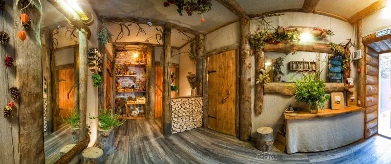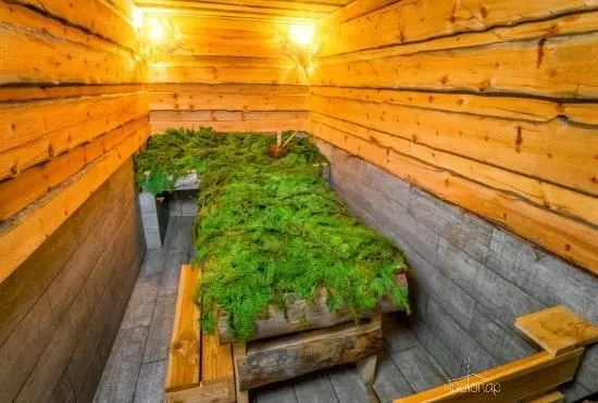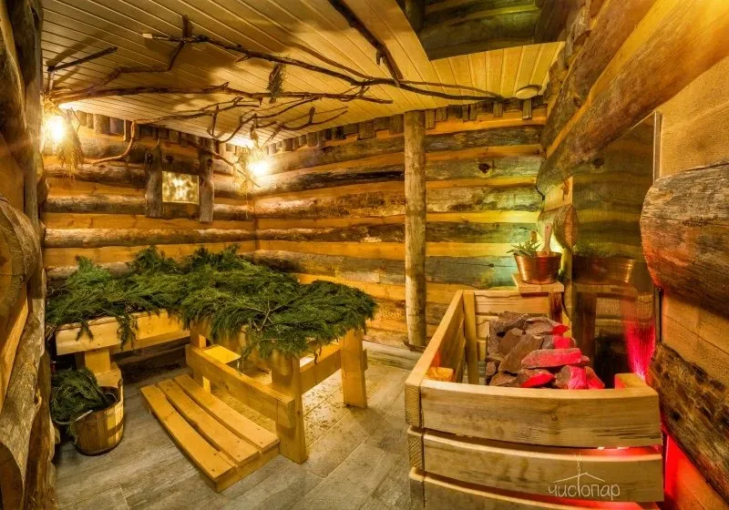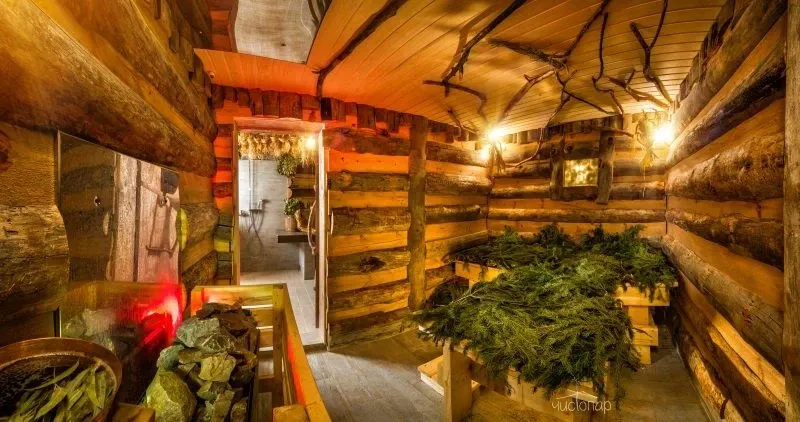 Русская баня «Живица» — это самый настоящий сруб из карельского сухостоя, грамотно встроенный в здание. Сухостойная древесина известна тем, что прочность имеет схожесть с прочностью скалы и не нуждается в обработке, за счет чего кислородный баланс и влажность поддерживаются на оптимальном уровне.