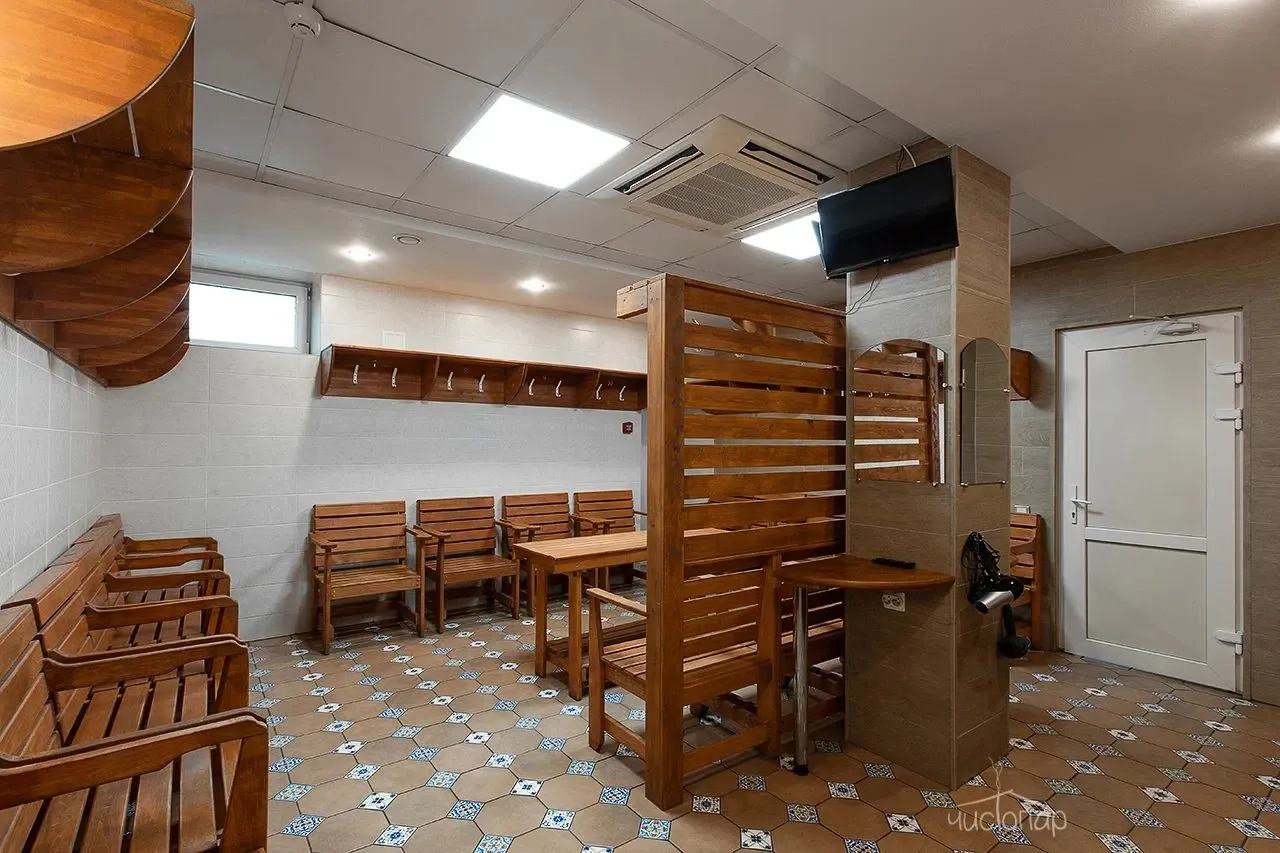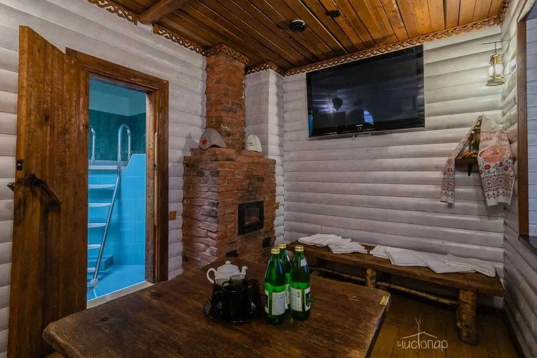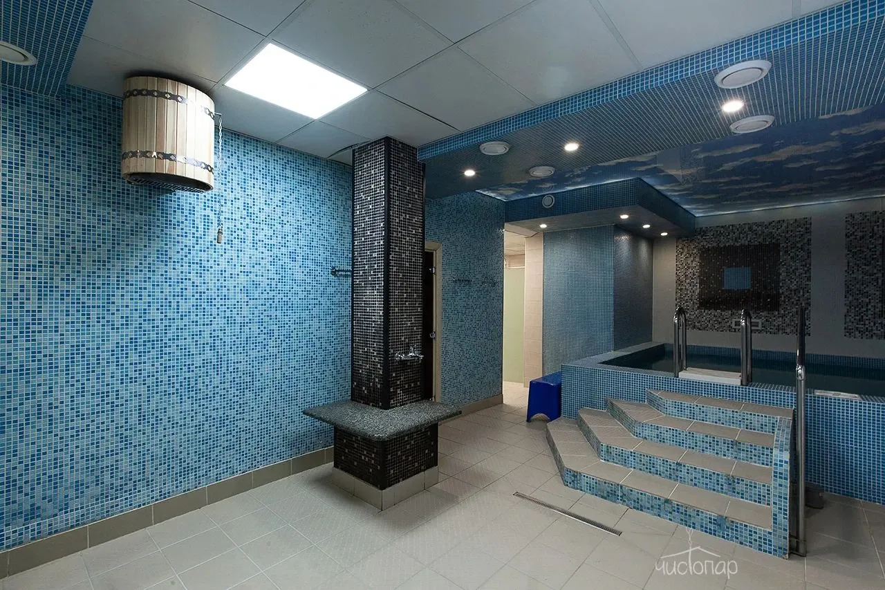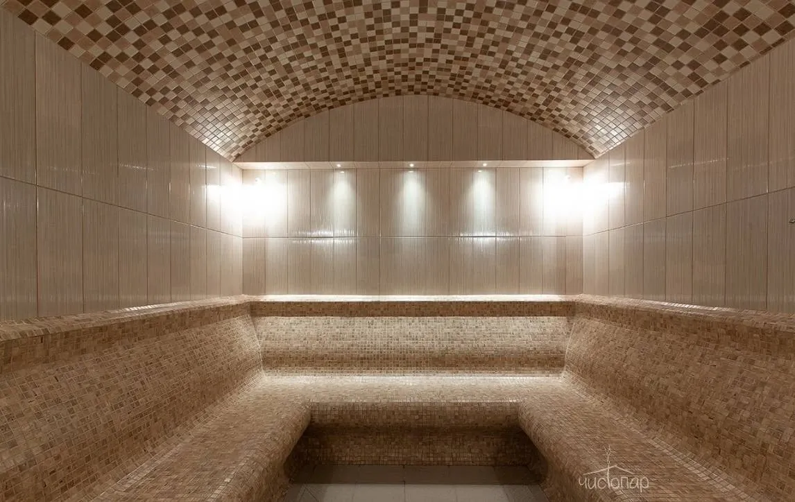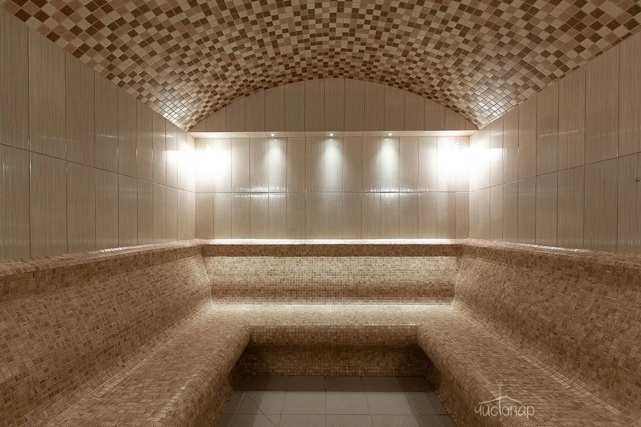 Баня "Гларус" - общее отделение бани вместимостью до 20 человек: турецкий хаммам, финская сауна, расслабляющая атмосфера комнаты отдыха с солевой стеной, купели, бассейн.