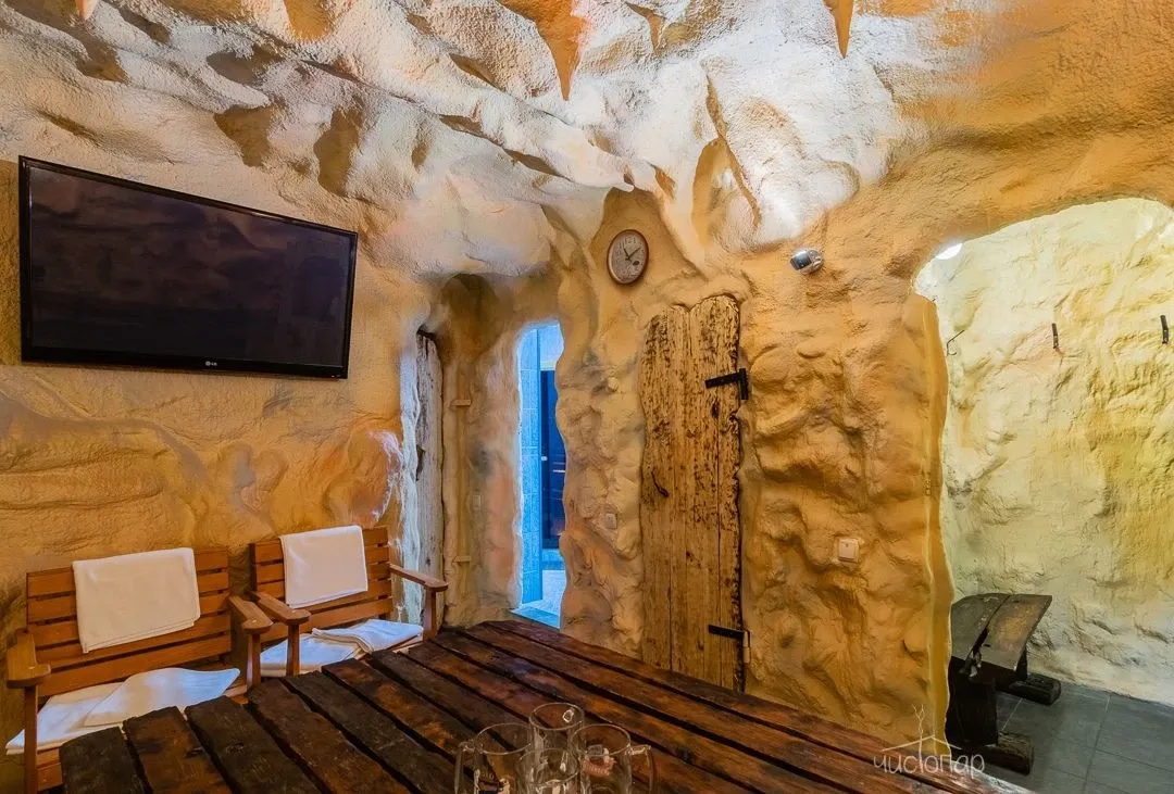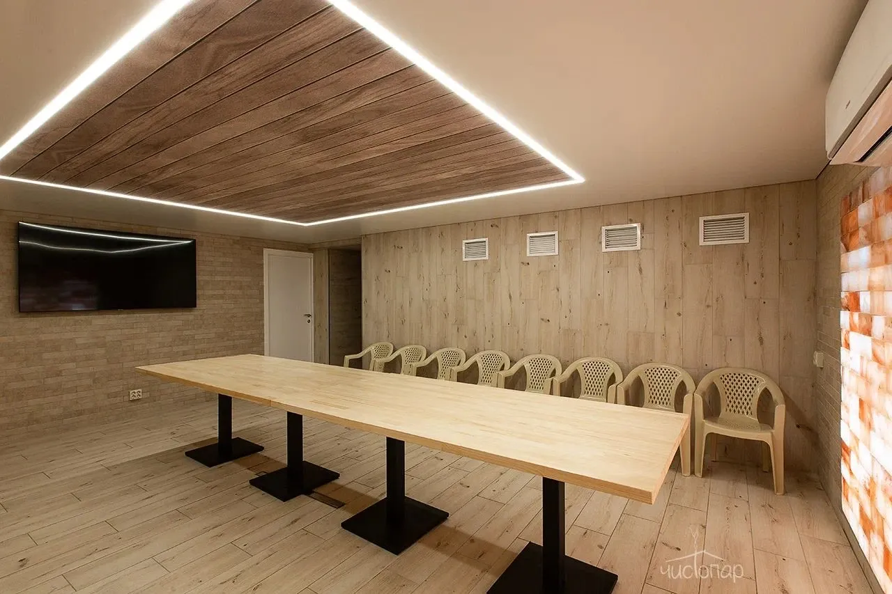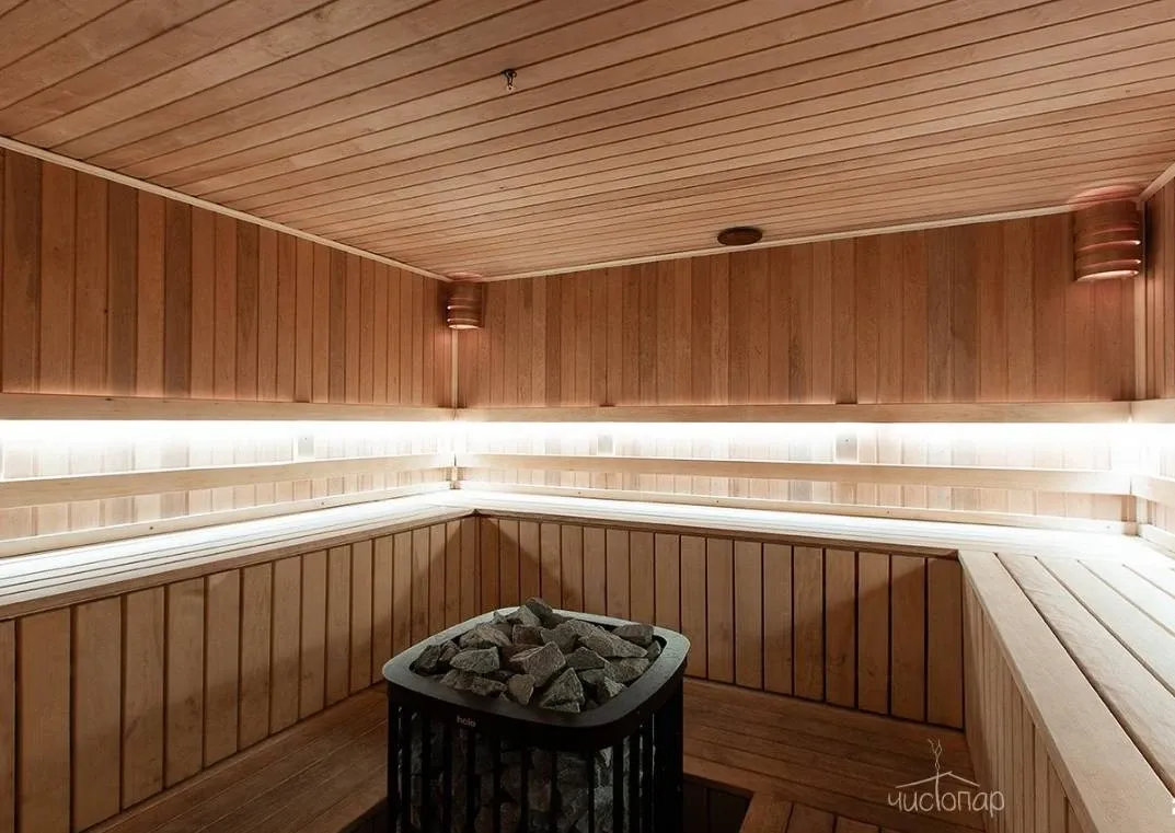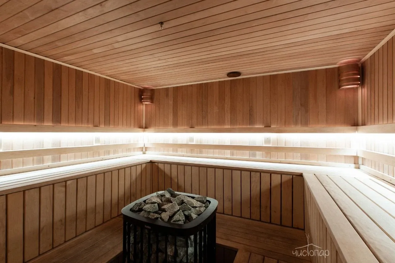 Баня "Гларус" - общее отделение бани вместимостью до 20 человек: турецкий хаммам, финская сауна, расслабляющая атмосфера комнаты отдыха с солевой стеной, купели, бассейн.