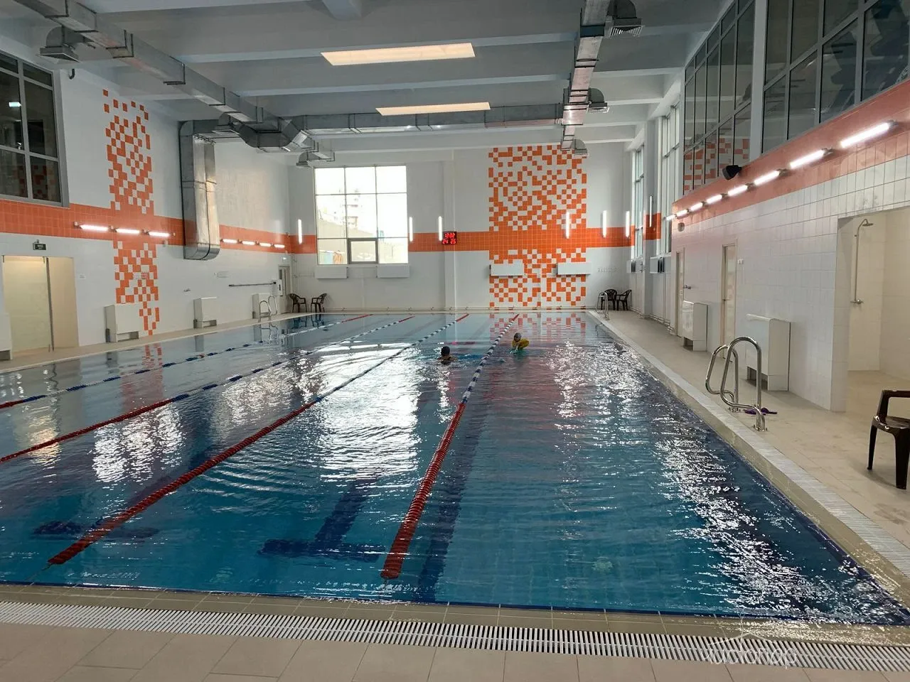 Длина бассейна — 25 метров, 4 дорожки.