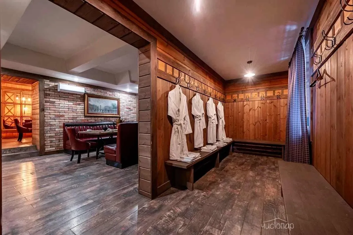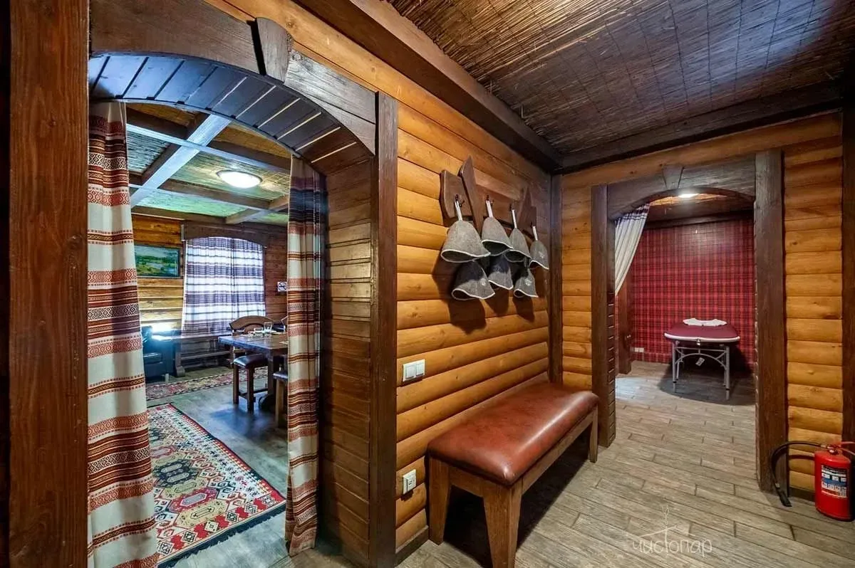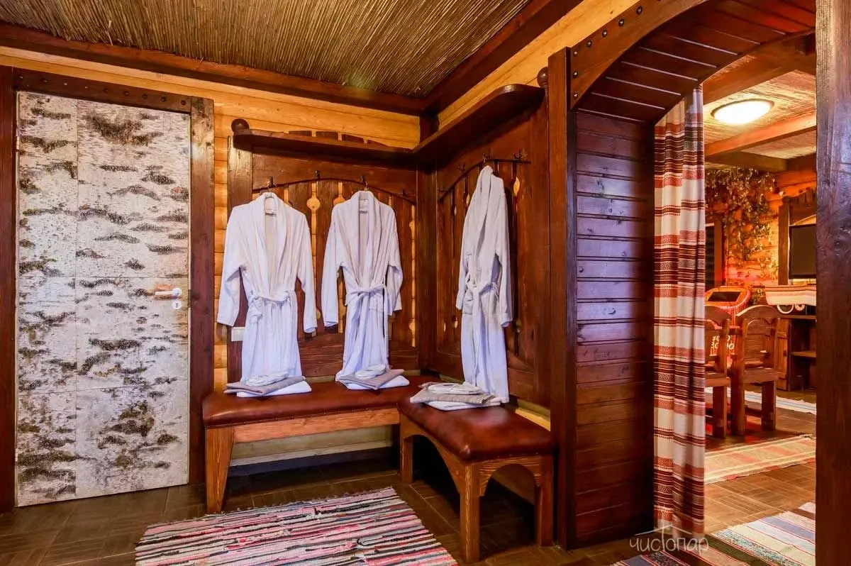 Гости могут разместиться в одном из трех теремов, пригласить банщика для качественного прогревания организма и профессионального парения, самостоятельно выбрать веники в большом ассортименте, арендовать банные принадлежности. В каждом срубе располагается чугунный (молодильный) чан на дровах с добавлением отвара из трав, оказывающий благоприятное воздействие на организм. Закрепить полученные результаты позволят мыльно-березовый и классический массажи, прохождение предложенных spa-процедур. Также к услугам гостей: бассейн, холодная купель, обливное ведро, уютные комнаты отдыха, русский бильярд, профессиональная система караоке.