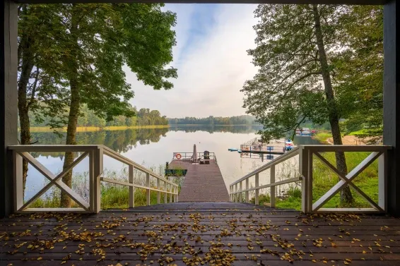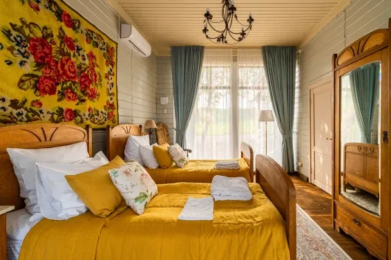 Отель-усадьба "Времена года" расположен на берегу озера Наговье, в окружении лесов и полей. Гостям предлагается проживание в стильных и современных коттеджах, оформленных в усадебном стиле. В номерах есть все необходимое для комфортного отдыха, включая балкон с видом на парк.