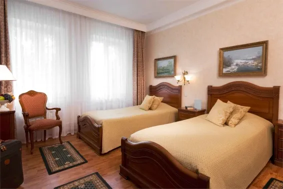 Оптимальный вариант для отдыха во время отпуска или в выходные дни семьей или в уединении. В одной уютной комнате созданы все условия для комфортного времяпровождения: двуспальная или две односпальные кровати, телевизор, вся необходимая меблировка. Номера представленной категории располагаются в корпусах № 1, 2, 3. К подкатегории Стандарт Плюс относятся парные номера 207/209 и 220/222, которые оборудованы единой межкомнатной дверью и с легкостью трансформируются в большой двухкомнатный номер.