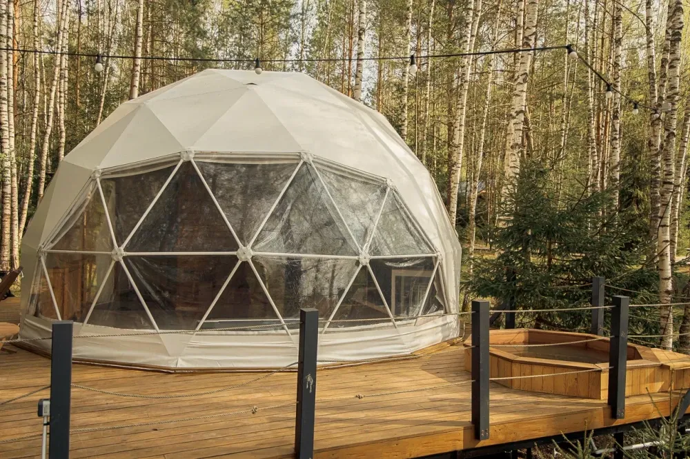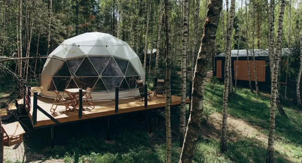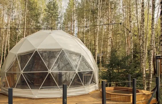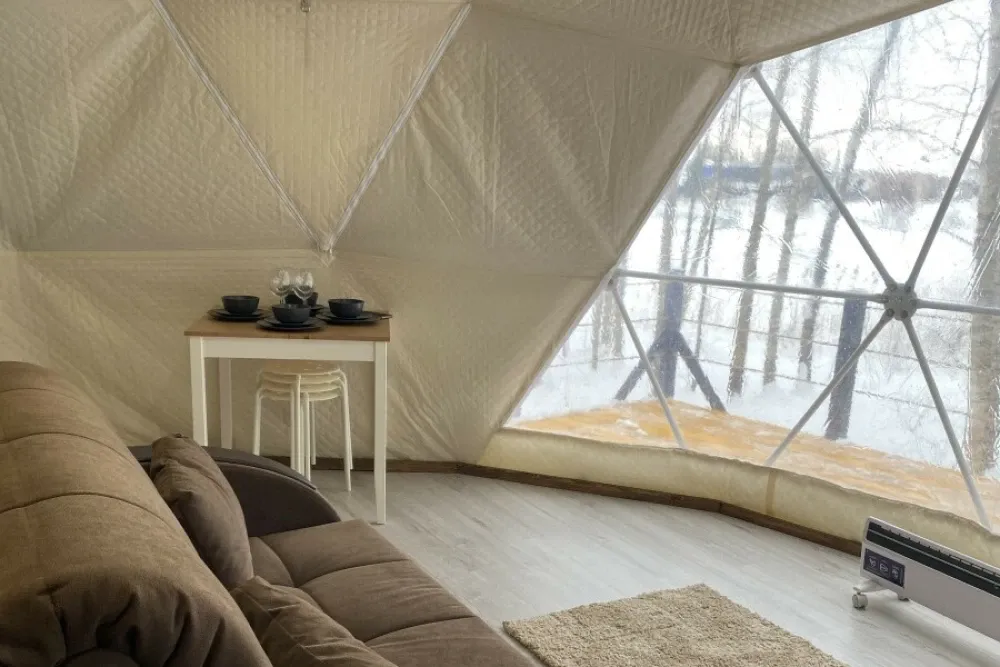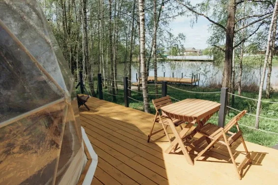 СФЕРАУникальный объект в самом сердце леса с видом на озеро. Купольная форма и обтекаемые формы позволяют максимально приблизиться к природе, испытать новые ощущения и зарядиться положительной энергетикой. Только вы, природа и тишина. Панорамные окна впускают больше света и воздуха во внутреннее пространство, создавая ощущение свободы и воздушности. Доступен в любое время года. В номере панорамные окна с видом на озеро, большая кровать на втором уровне, диван с ортопедическим матрацем , мини-кухня, холодильник, микроволновая печь с набором столовой посуды, чайник, чайный набор, обеденный стол, стулья. Плиты нет! Отопление – электрические конвекторы с памятью режимов настроек. Зона барбекю: мангал, решетки, шампуры, дрова – все включено в стоимость проживания. Терраса (15м2) оборудована комплектом деревянной мебели. Комплект шезлонгов. Большая прилегающая территория, собственный выход к воде. Бесплатный Wi-Fi. Размещение 4 взрослых места. Площадь номера 28м2. Проживание с животными по согласованию. Заезд с 14.00 до 21.00. Выезд с 09.00 до 12.00