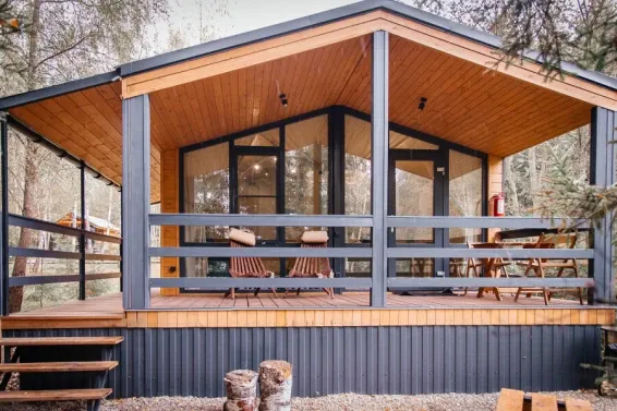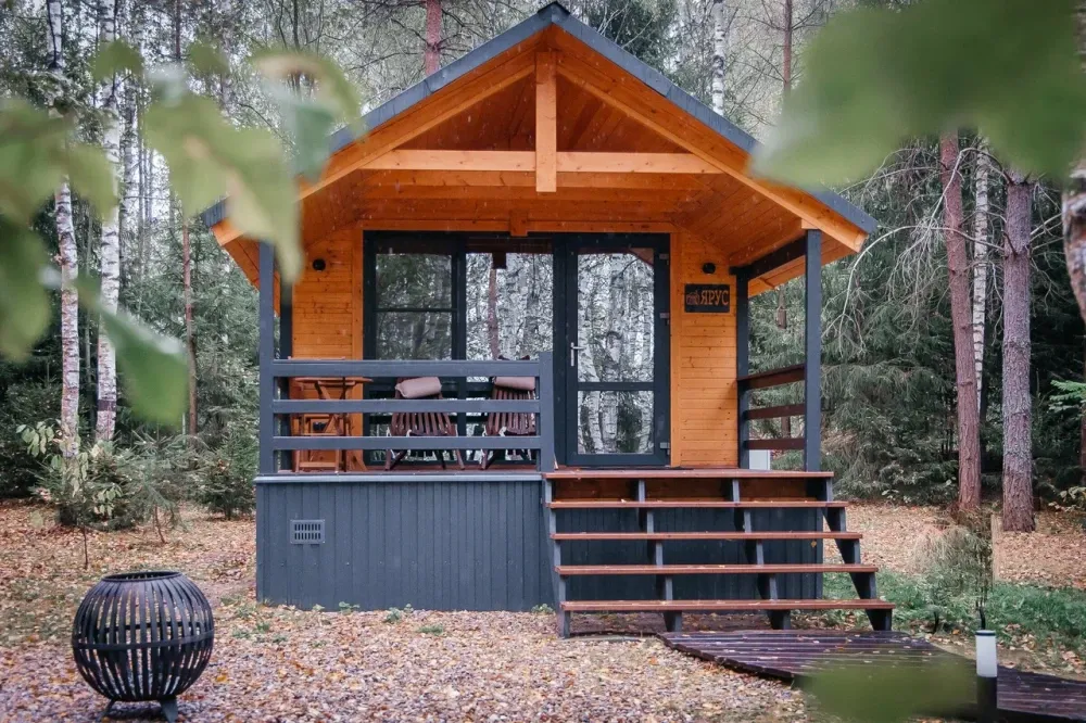 Домик «БАРН» для семейного отдыха. В нём размещаются четверо взрослых, также можно поставить доп.спальное место для взрослого или детскую кроватку.