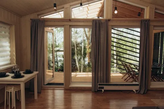 У нас тепло круглый год! Каждый домик оборудован электрическим конвектором, благодаря которому вы можете настроить комфортную для вас температуру.