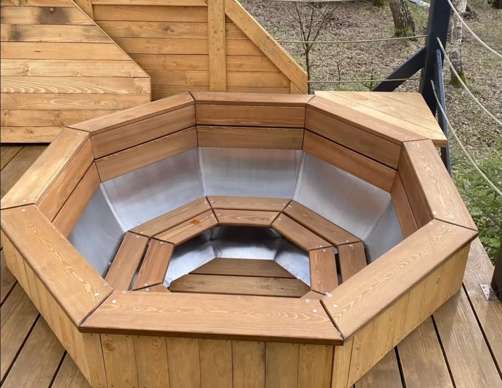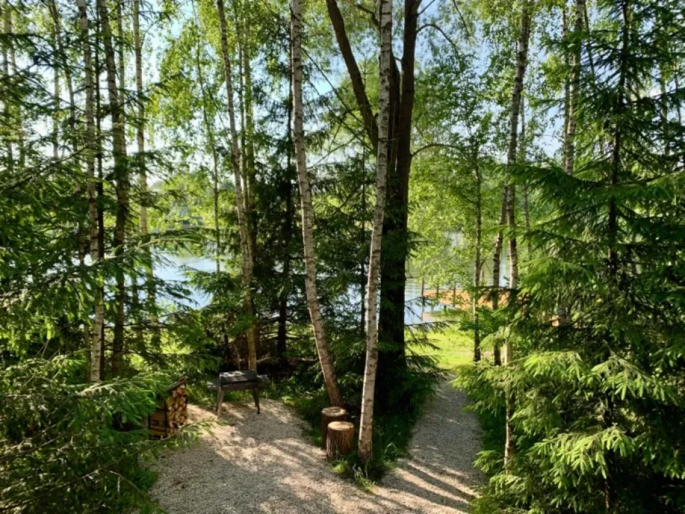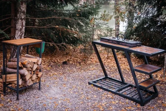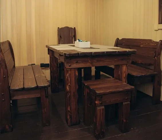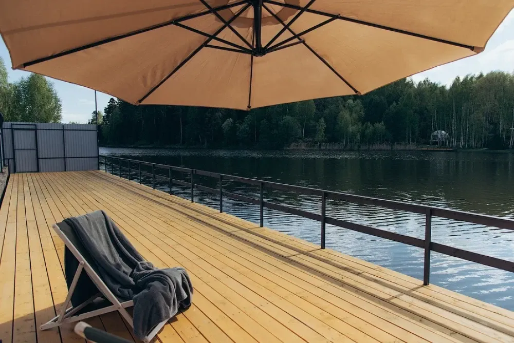 Зона барбекю расположена непосредственно возле водоема. Мангал, решетки, шампуры, дрова – все включено в стоимость проживания. Терраса (12м2) оборудована комплектом деревянной мебели и шезлонгами. Проживание с животными по согласованию. Заезд с 14.00 до 21.00. Выезд с 09.00 до 12.00