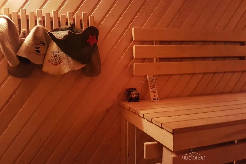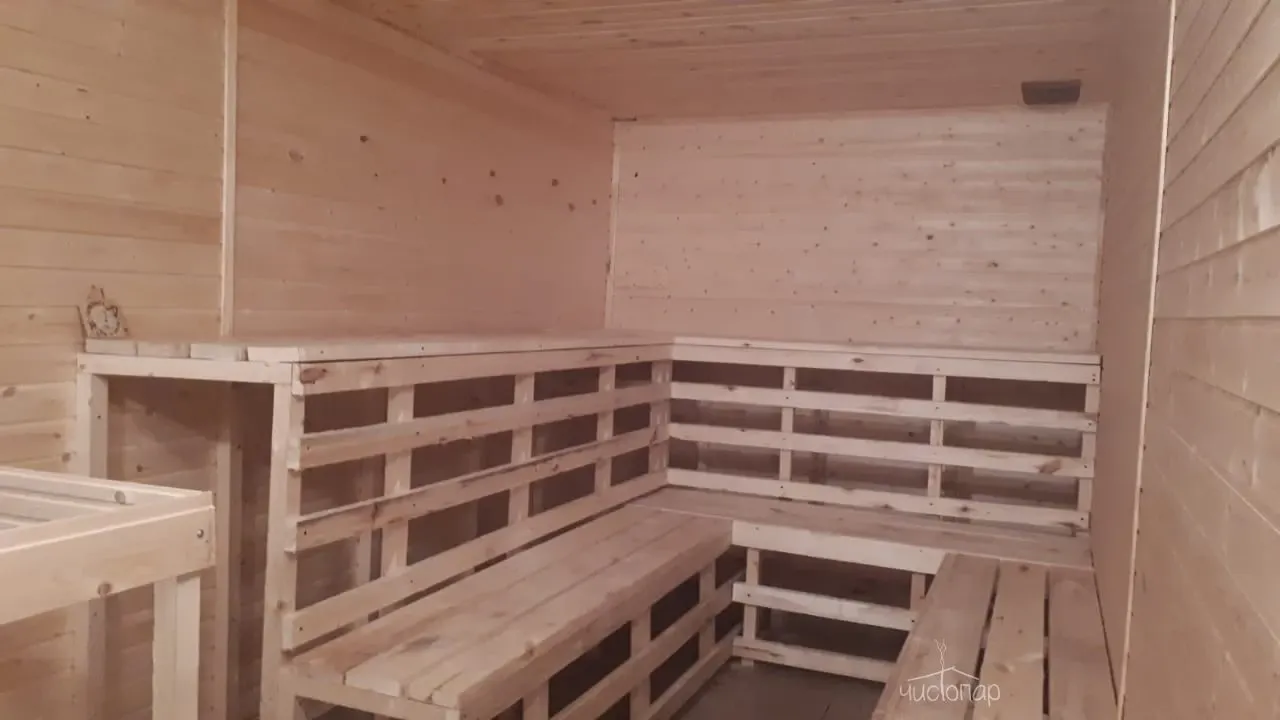 Русская парная. Финская сауна. Высокая температура, деревянное убранство и продуманная система вентиляции. Комната отдыха с ТВ.