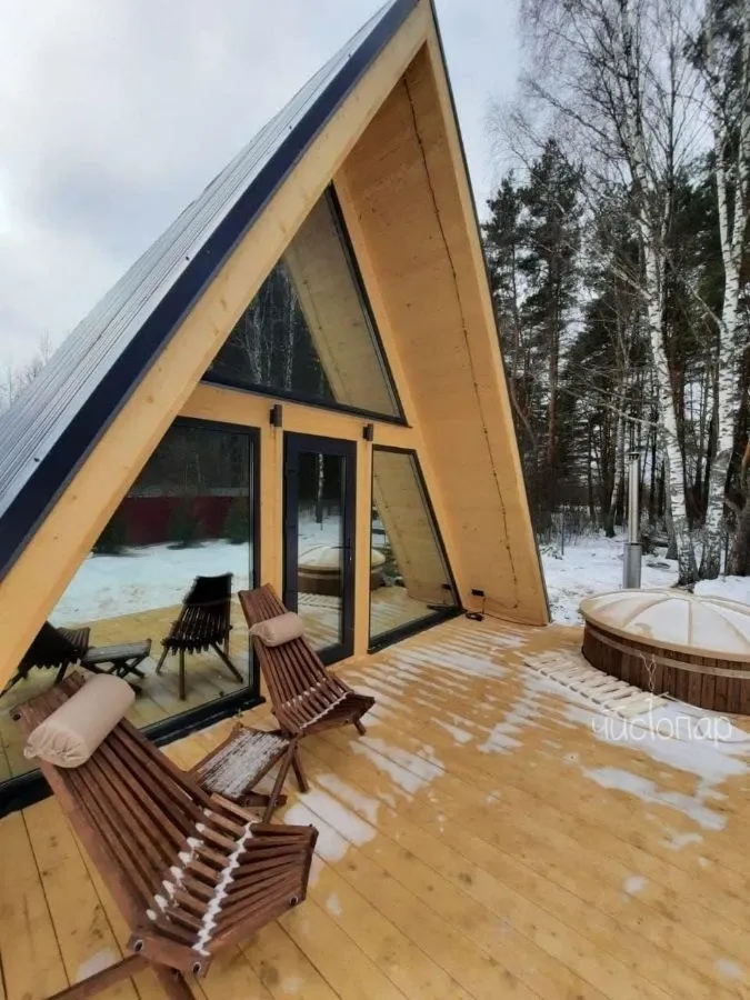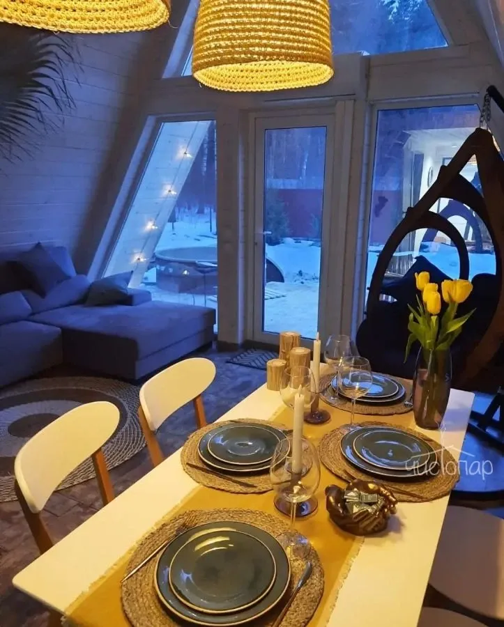 More Lesa — это атмосферный и уютный коттедж в формате A-frame в Подмосковье. Расположен по адресу: Московская область, Ногинский район, СНТ Полянка, ул. Западная, 114.