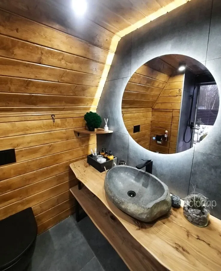 Тихое место на краю соснового леса. Комплекс для загородного отдыха More Lesa предлагает своим гостям отдохнуть в купели-фурако с подогревом.