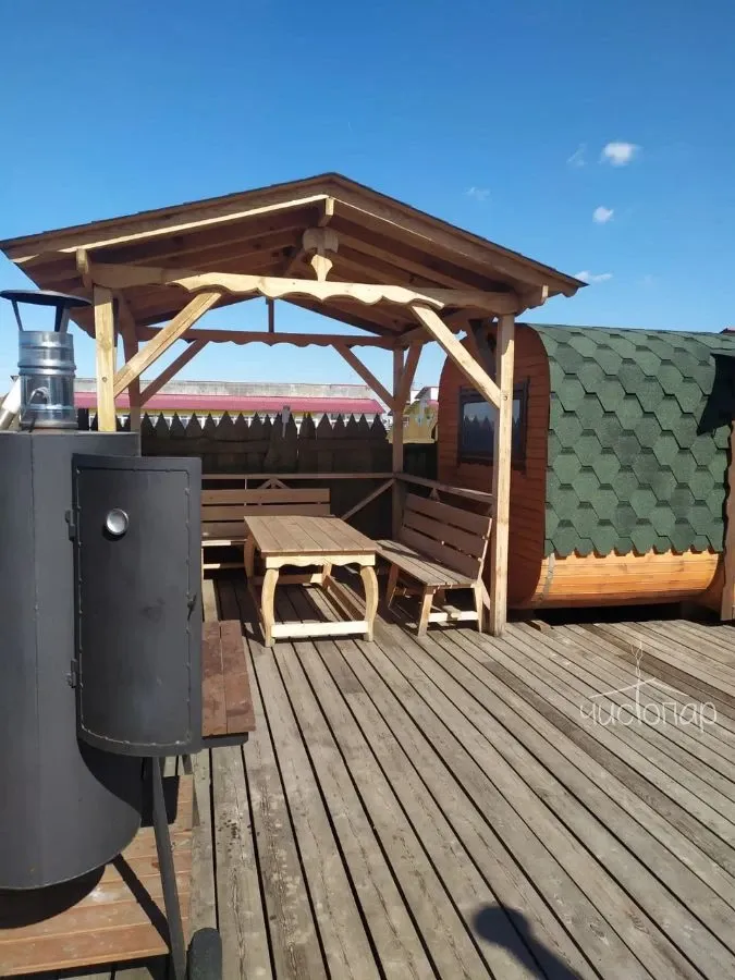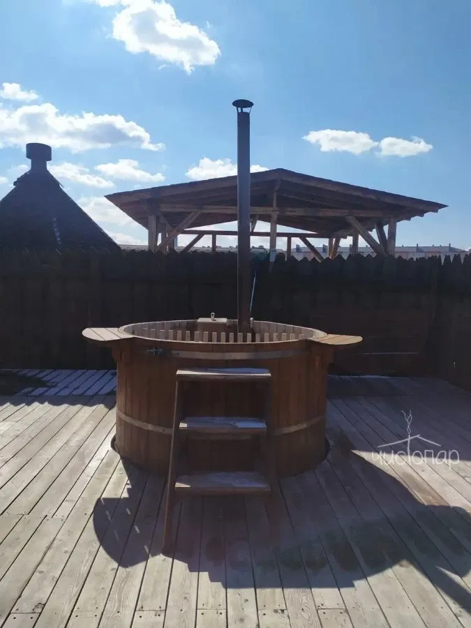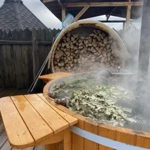 Как дополнение к бане купель фурако под открытым небом с теплой водой.