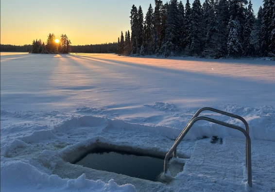 - купель с ледяной водой внутри бани, а зимой - прорубь!