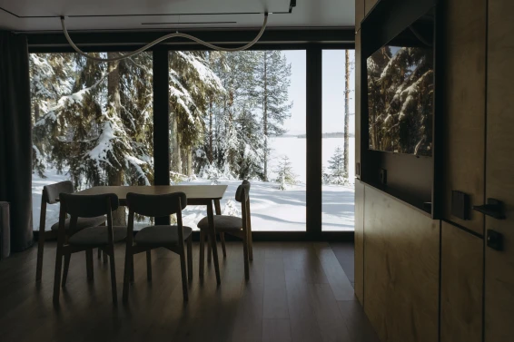 Дом с панорамным видом на озероАтмосферные дизайнерские дома с панорамным видом на лес или озеро. Количество гостей в доме 1-4 человека.