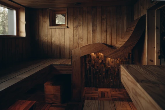 - теплый многоуровневый внутри бани