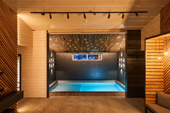 В банном комплексе 2 бассейна и купель: