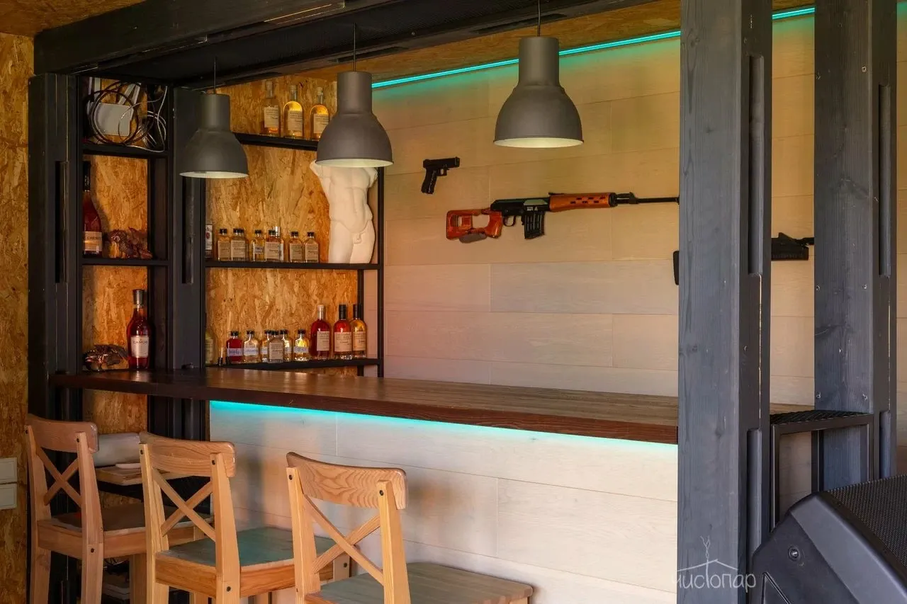 Здесь предусмотрено все для комфортного проживания, включая оборудованную кухню, скандинавский гриль-домик, печь, казан, караоке, тир, коптильня, бильярд, бар на террасе и аренда лодок. Так же по запросу комплекс предлагает закрытый клубный формат, где можно наслаждаться отдыхом в полном уединении. Кроме того, предлагаются программы развлечений, такие как катание на аэролодке, пикник на мысе и услуги шеф-повара.