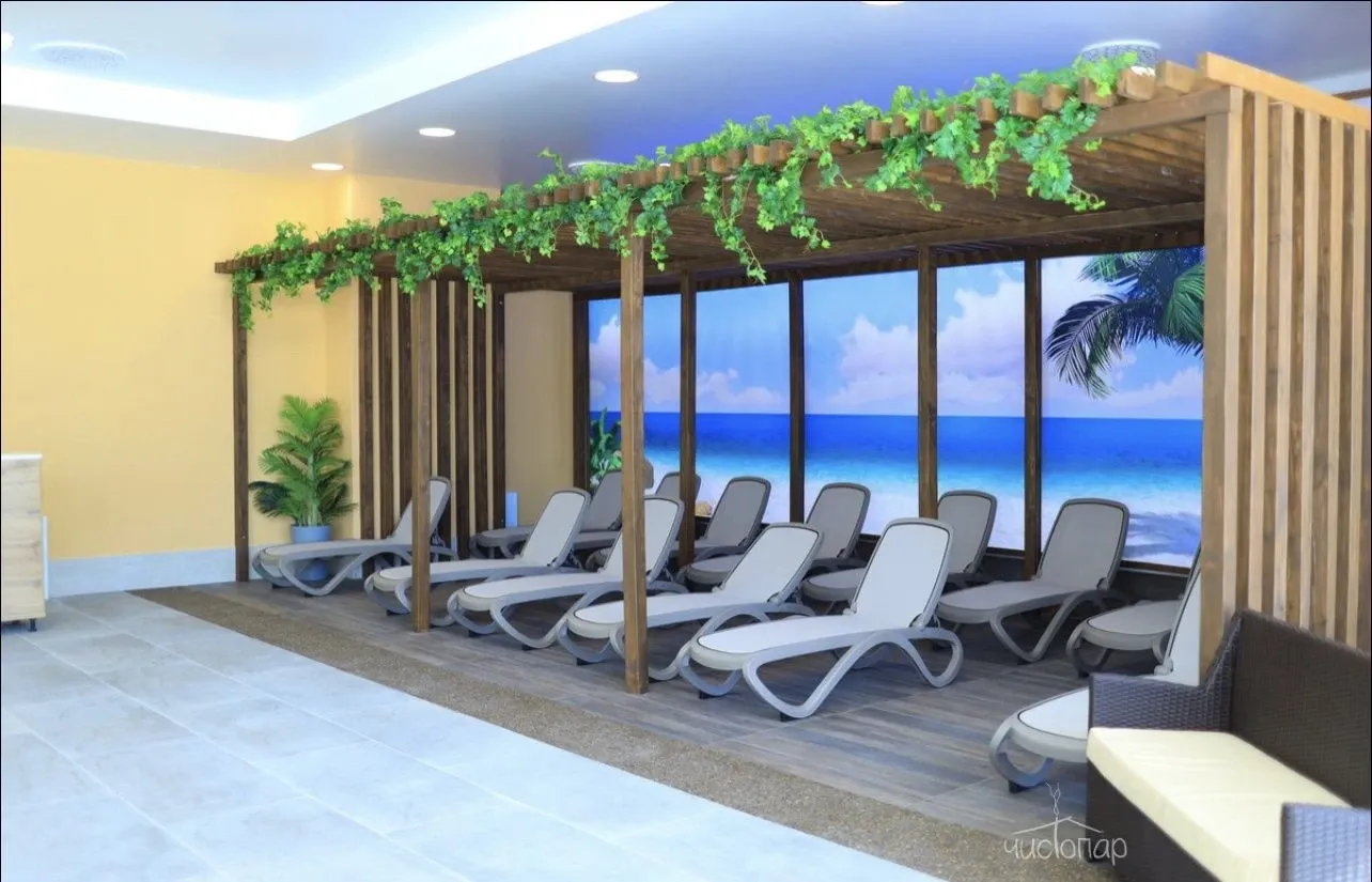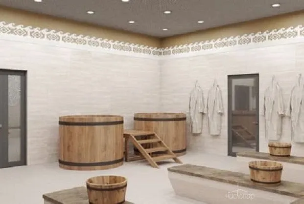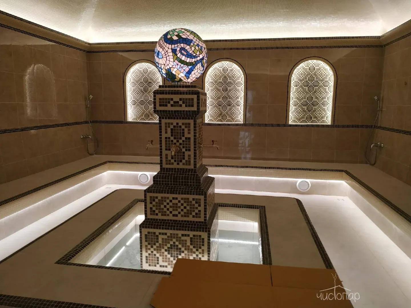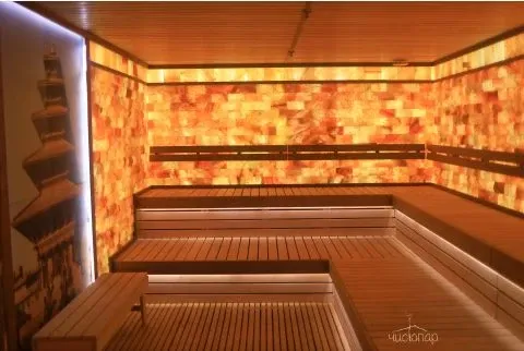 Большой турецкий хамам с фонтаном, Старорусская парная с программами массового парения. Соляная сауна для галотерапии, а также «Грот впечатлений» для контрастных процедур, таинственная сауна "Каменная чаша" и детская сауна “Тёплый кораблик».