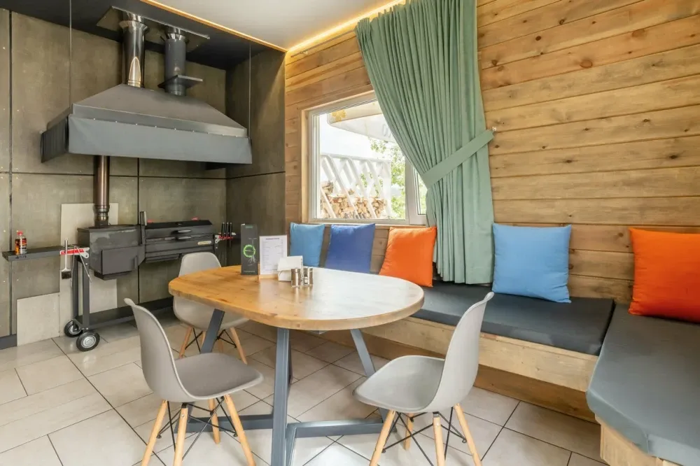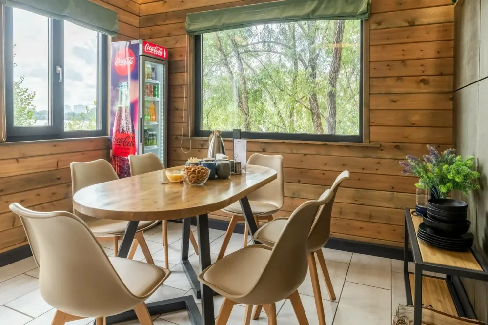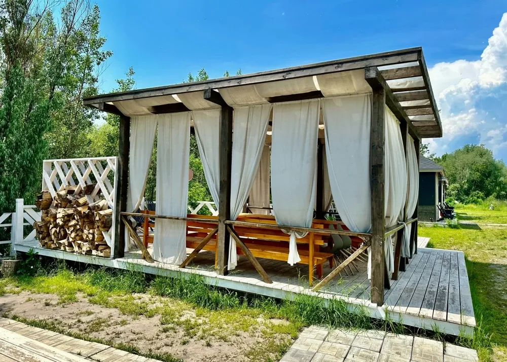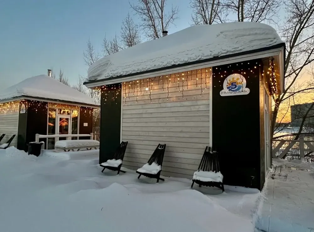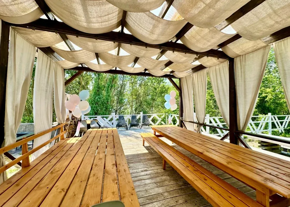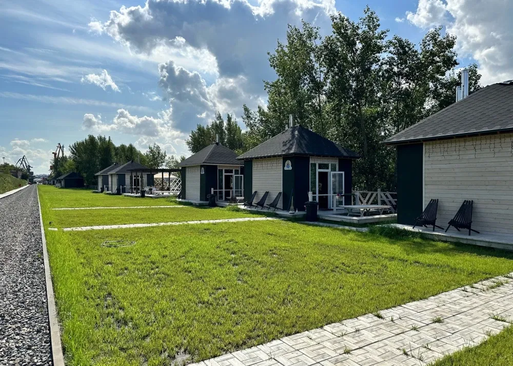 На территории вдоль реки расположены Гриль-домики, бани, кафе, беседки, гриль-зоны для семейного отдыха, веранда для корпоративов, детский городок, ну и конечно же современный, большой открытый бассейн с шезлонгами!