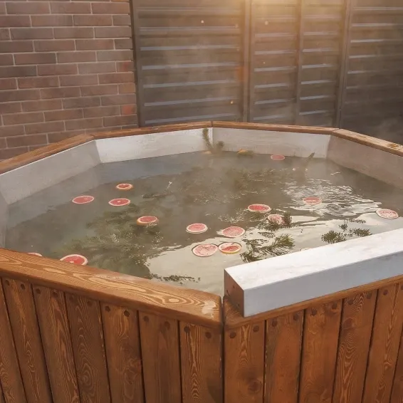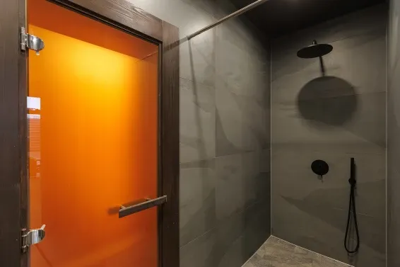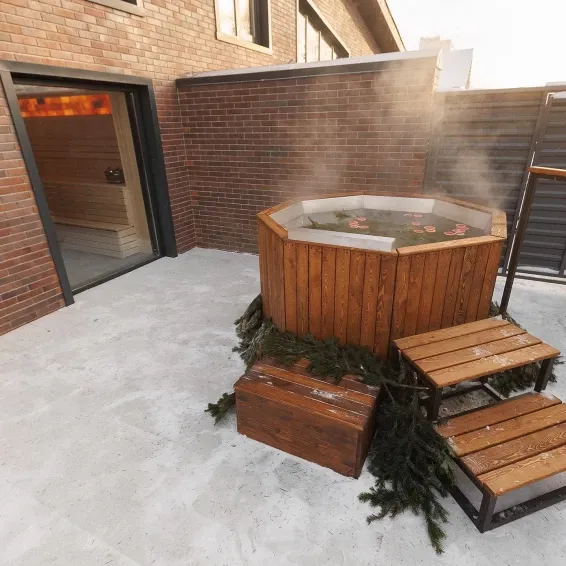 В каждом номере у нас имеется панорамное остекление , а также парные с видом на уличную зону , где располагается купель с подогревом, массажем и мангальной зоной.