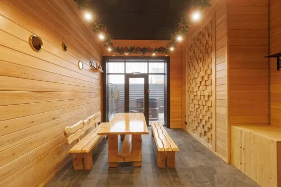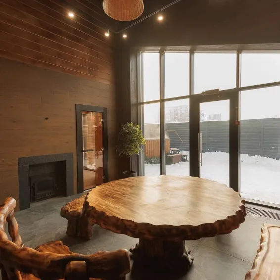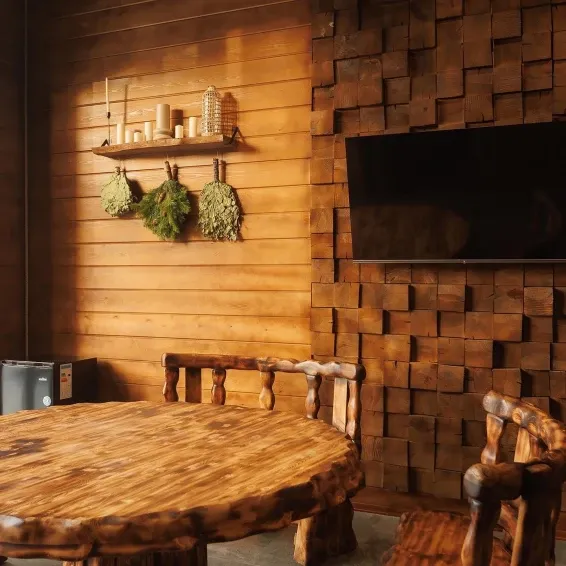 В Таёжном номере топка располагается в зоне ресепшена , Вы можете положиться на нашего печника , который самостоятельно будет подкидывать дрова и поддерживать необходимую температуру в парной .