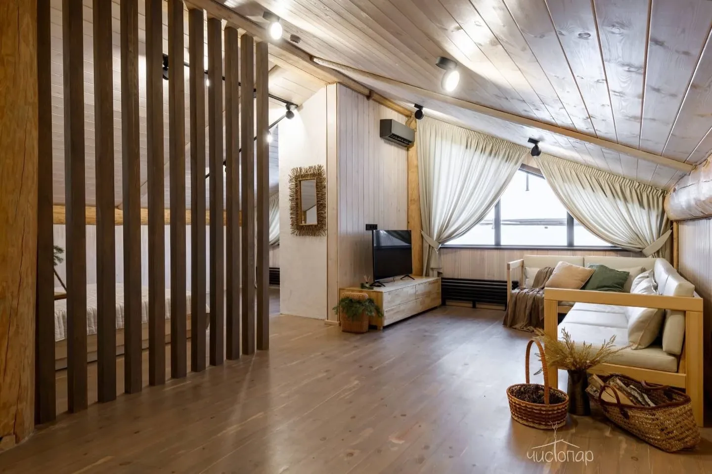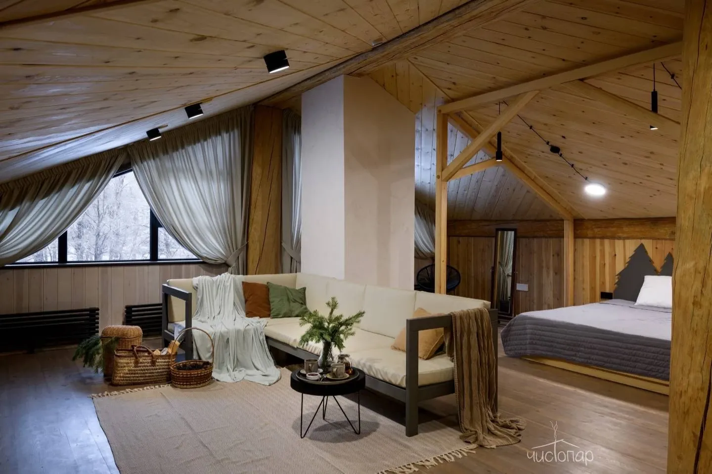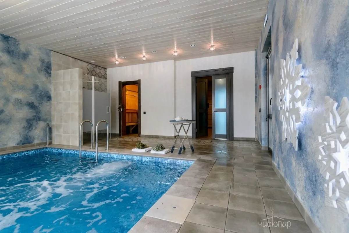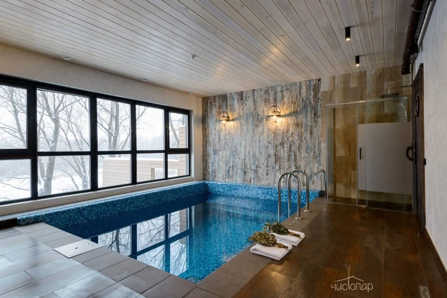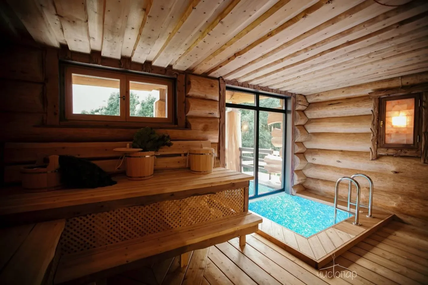 На первом этаже здания расположены парилка, общая комната, душевая и бассейн. На втором – две спальни и бильярдная комната для интересного и активного отдыха. Прекрасное дополнение к бане «Озеро» — купель на открытом воздухе топится дровами и температуру воды можно регулировать по вашему желанию. В зоне отдыха предусмотрены Wi-Fi, плазменная панель и современная аудиоаппаратура. Две террасы и панорамный вид дают возможность насладиться чудесными видами на реку и окрестности и сделать незабываемые фото. Помещение парной выполнено полностью в уникальном дизайнерском стиле из массива кедра. Также особенностью парной является полное отсутствие химических пропиток. Дерево «дышит» и создается максимально оздоровительный эффект. А после насыщенного пара вы сможете окунуться в бассейн со встроенной системой гидромассажа и почувствовать как ваше тело приходит в тонус.