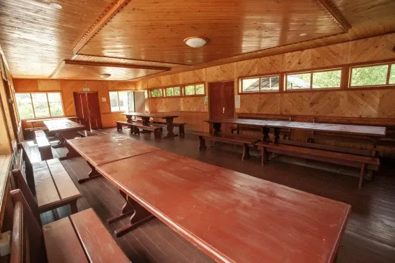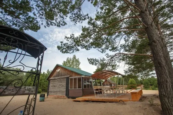 Питание осуществляется самостоятельно. Есть банкетный зал, павильон-кафе и мангальные беседки для аренды.
