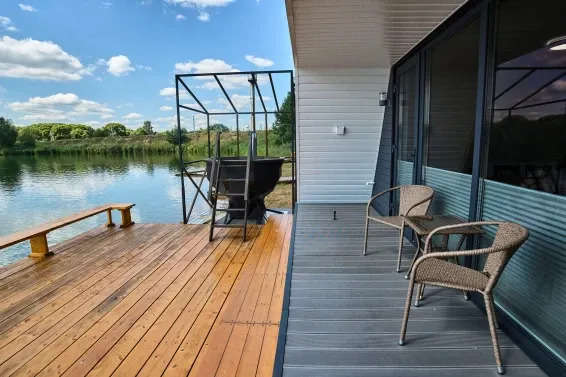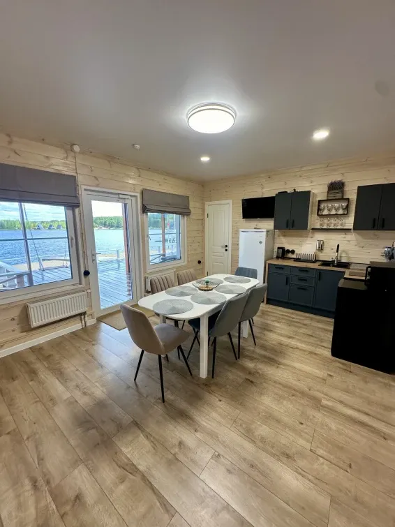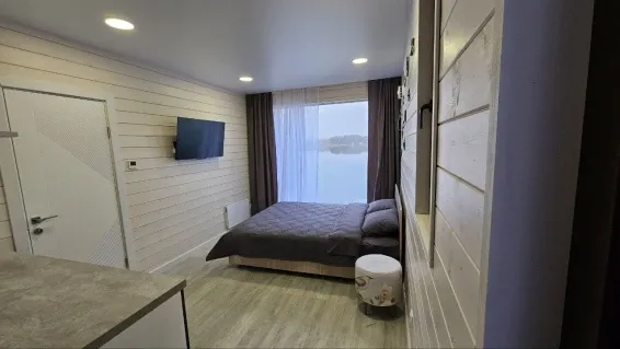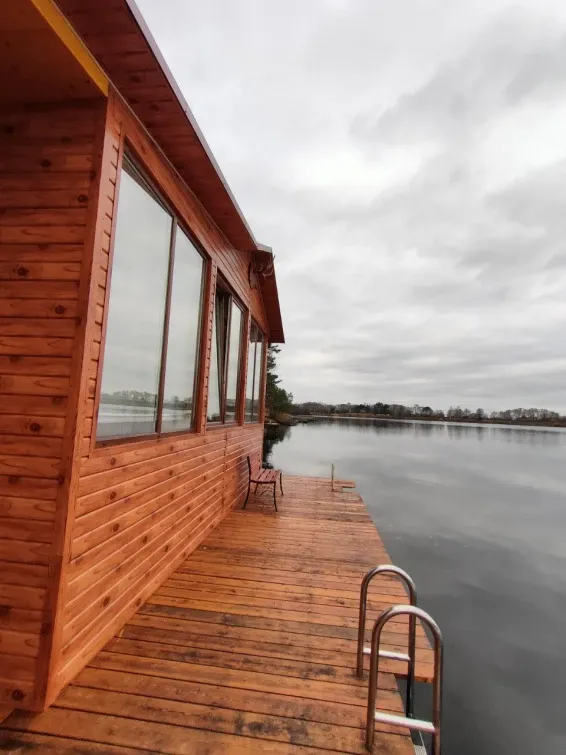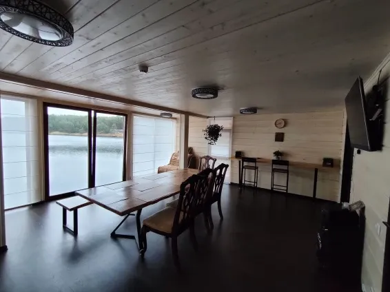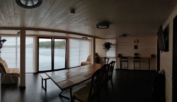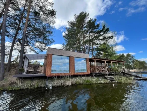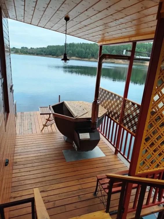 Двухэтажный дом с выходом к водоему. Собственная терраса с лаунж зоной. У дома есть свой Чан «Сибирский Бриллиант», находится непосредственно на террасе. Около дома есть мангальная зона. Площадь дома 120 кв.метров. Потрясающий вид из окон!