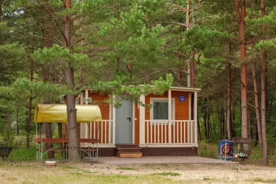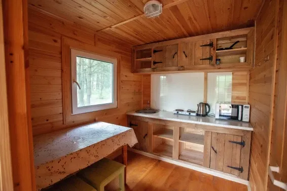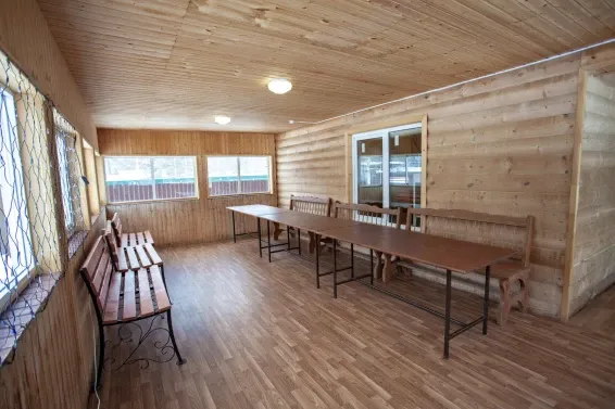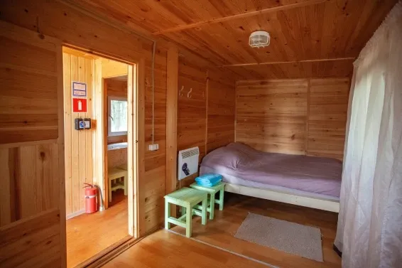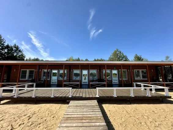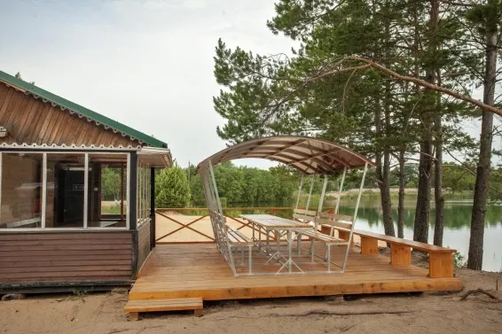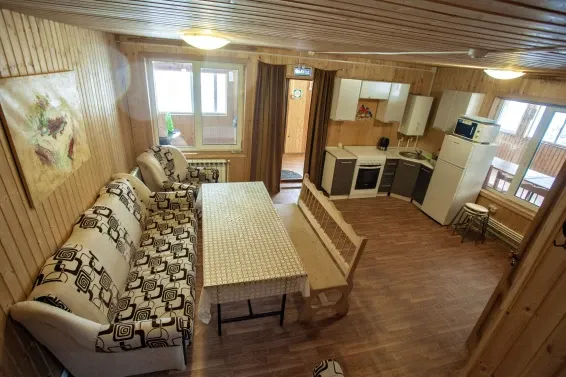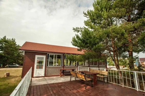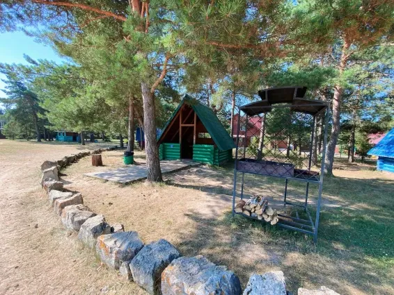 Отдыхающие размещаются в деревянных гостевых домиках, рассчитанных на 8-10 человек.