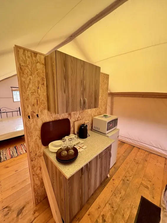 На базе к услугам гостей предоставляется новая русская баня и уличная купель, а также ещё одна баня - Баня "Глэмпинг", расположенная на территории Глэмпинг-парка на берегу живописного озера.