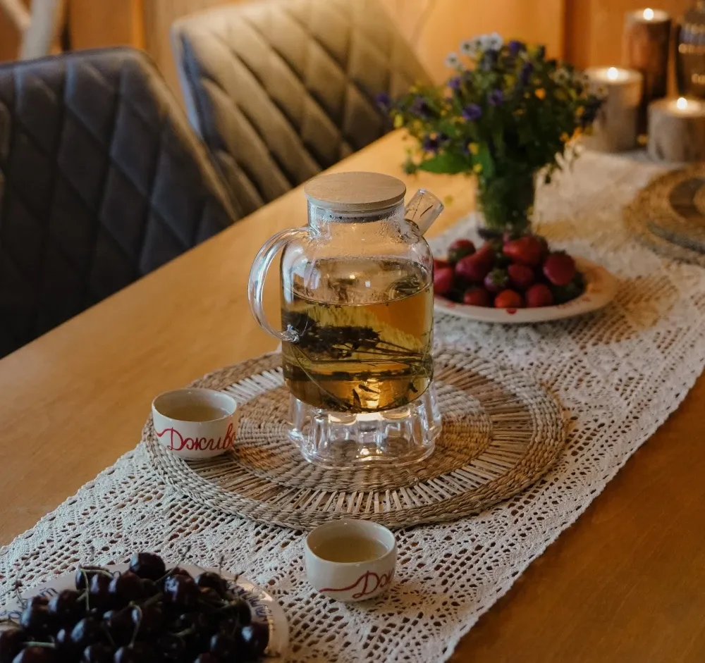 • Чаепитие у окна. Травяной чай с медом, ягодами и десертами.