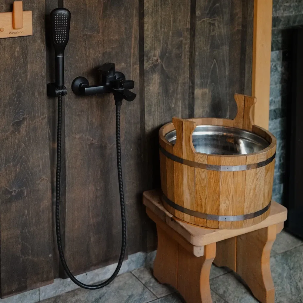 Горячая купель Polar Spa с аэромассажем, тропический душ, обливные устройства, полный набор банных принадлежностей, организация мероприятий и ретритов.