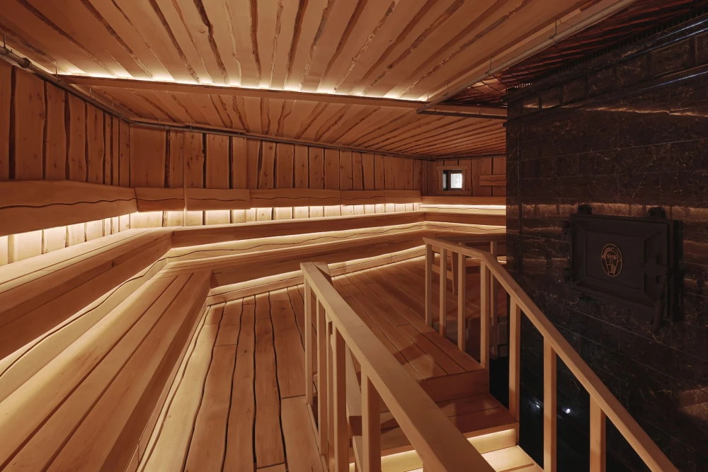 Пространство для семей и компаний: парная с гималайской солью и хаммам, где каждый час проводятся сеансы ароматического парения. Просторная СПА зона для индивидуальных процедур.