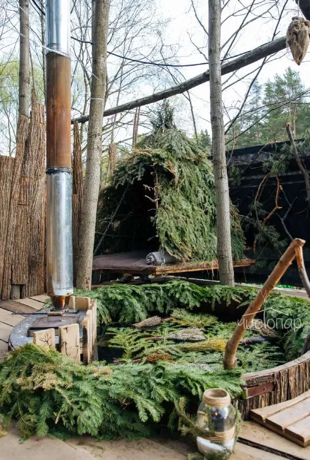 Единство с природой на берегу реки в окружении реликтового леса. Место Силы окутано ароматами хвои, луговых трав, цветочного чая, дуба, берёзы, можжевельника, душицы и липы, которые были привезены из разных регионов России: Красной Поляны, Алтая, Урала. Вы отключаете телефон, чтобы абстрагироваться от проблем и суеты и воссоединиться с природой. Банное пространство находится на берегу реки Сетунь в окружении 300 гектаров реликтового леса.