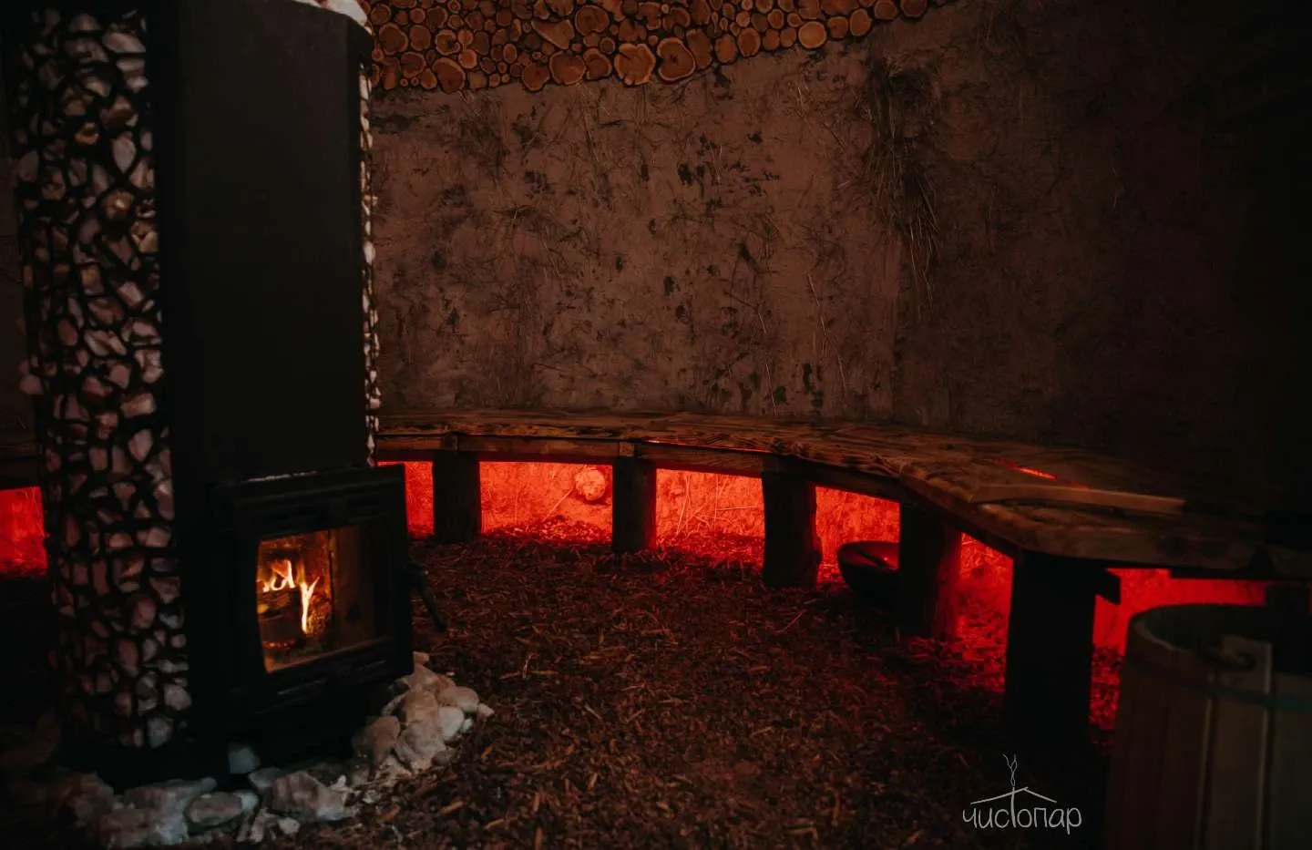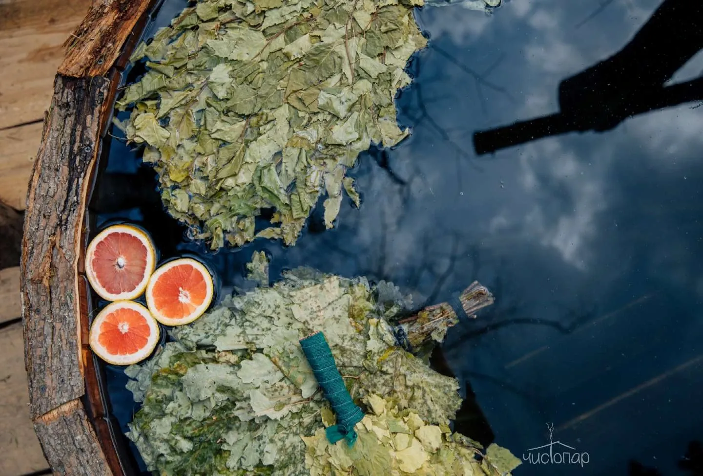 Первый пар раскрывает ваши поры, через них выходят грязь и токсины. Пот смывается тёплой эвкалиптовой водой 36°, обладающей природным антисептическим свойством