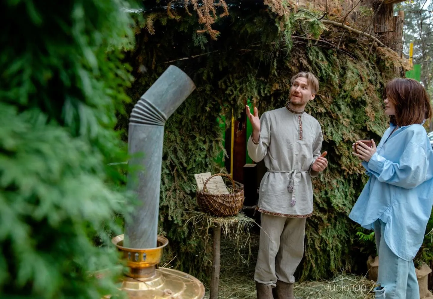 Перезагрузитесь от городской суеты, окунувшись в старорусскую историю 18 века: бани по-чёрному, по-серому или по-белому, купели, еда из русской печи и травяной чай из самовара на дровах.