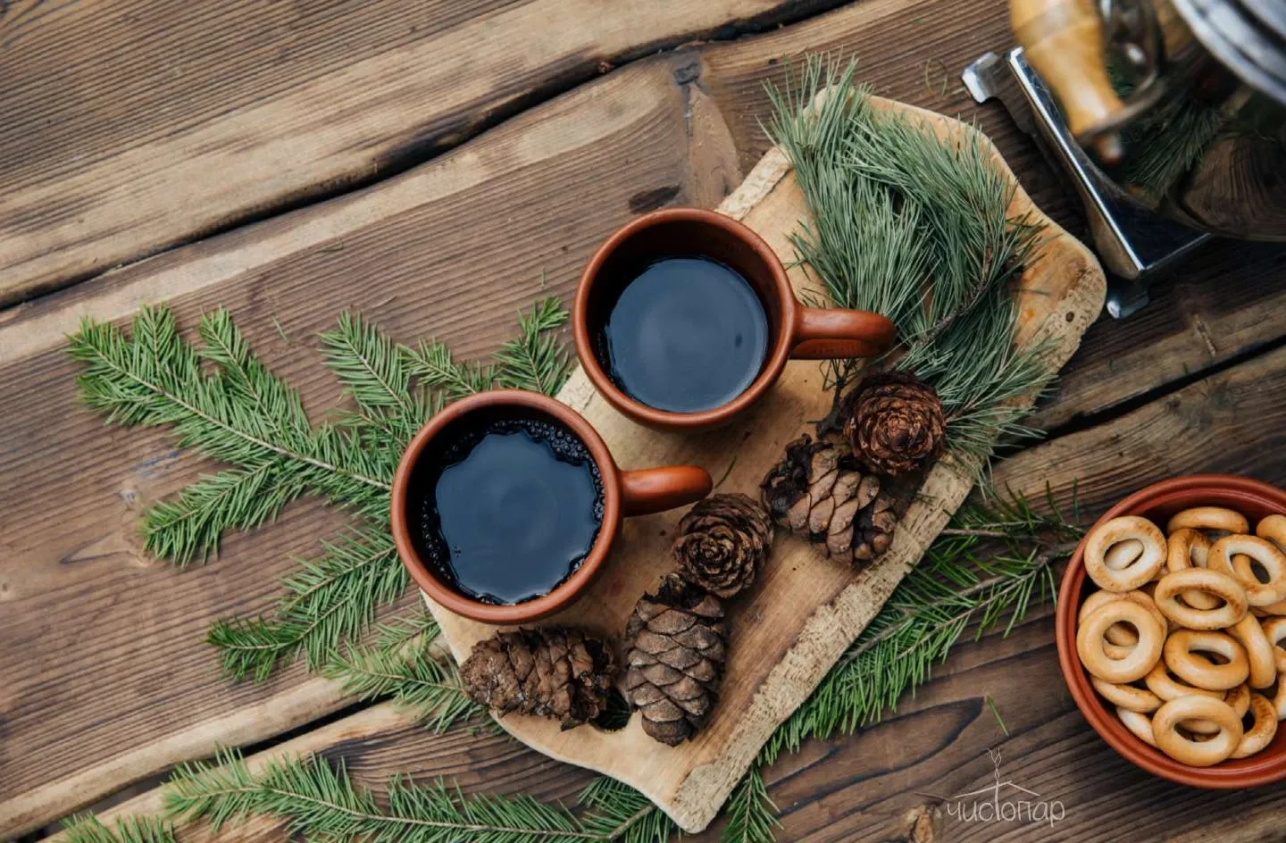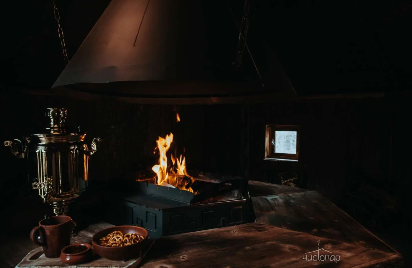 Вас угощают чаем с корнем солодки и шиповника, приготовленном на дровяном самоваре. Такой напиток улучшает циркуляцию лимфы и ускоряет метаболизм