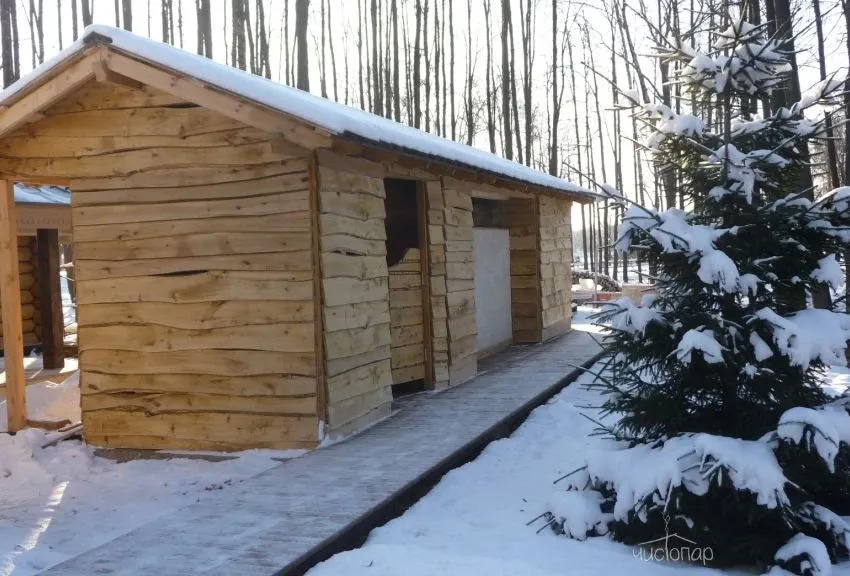 - Парк диких животных с вольерами в лесу, открыт круглый год