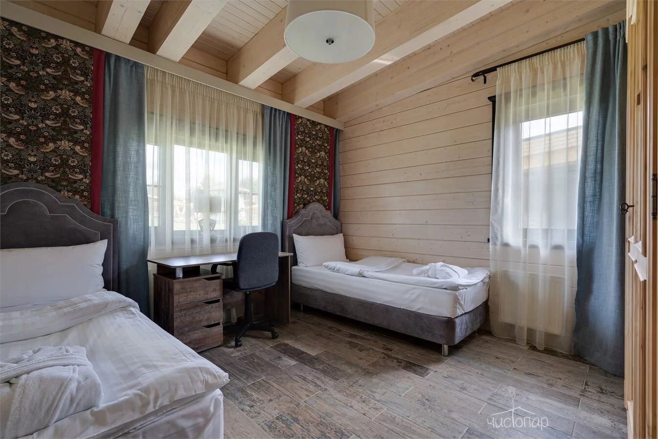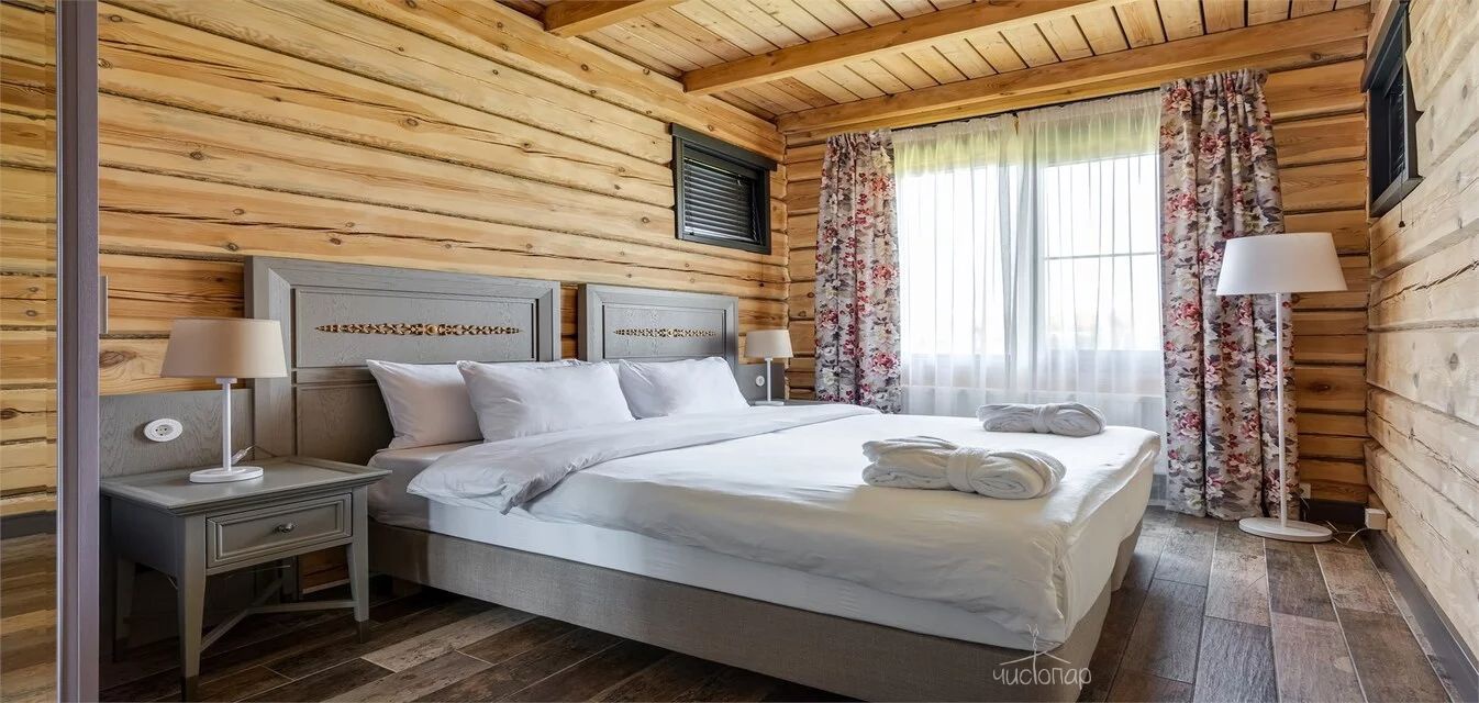 Коттедж с двумя спальнями, собственной террасой и полностью оборудованной кухней станет идеальным выбором для семейного отдыха.