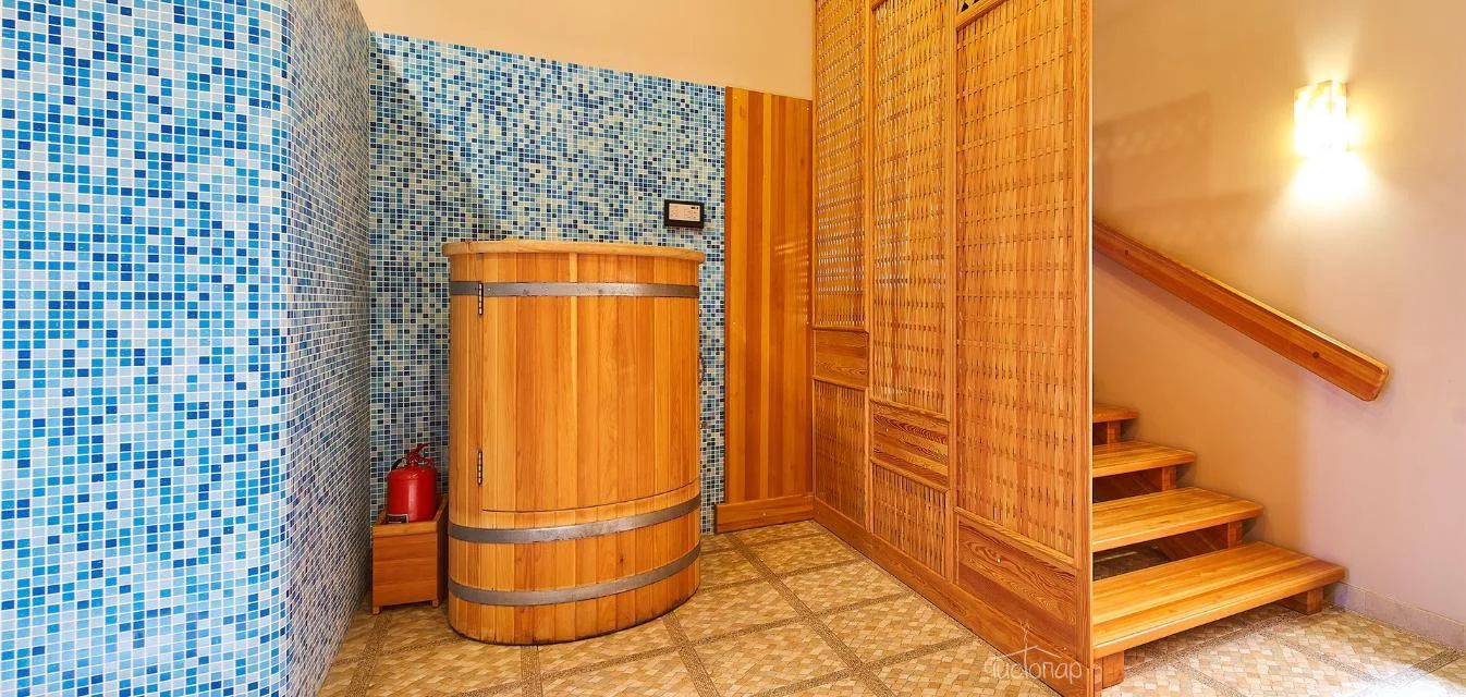 В сауне используются аромамасла, которые придают воздуху приятный и расслабляющий аромат. Температурный контраст и ароматические эфиры создадут атмосферу настоящего спа-отдыха.
