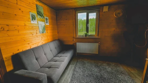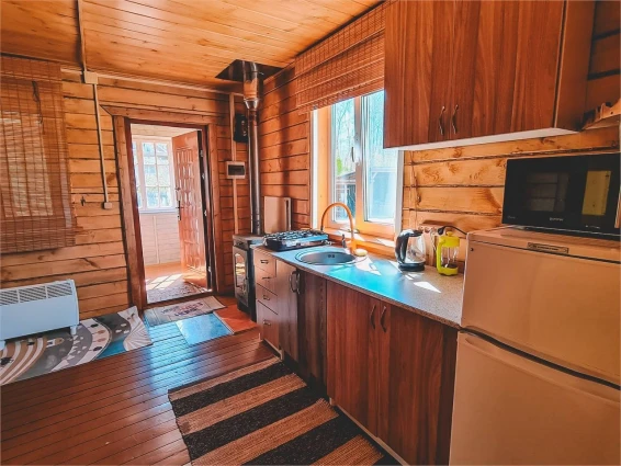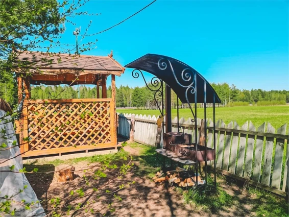 Теплый дом на огороженной территории 40Га! 1 спальня, гостиная, кухня, душ, туалет и все необходимое для проживания. Уютный двор с мангальной зоной и беседкой. Стоянка для автомобиля.