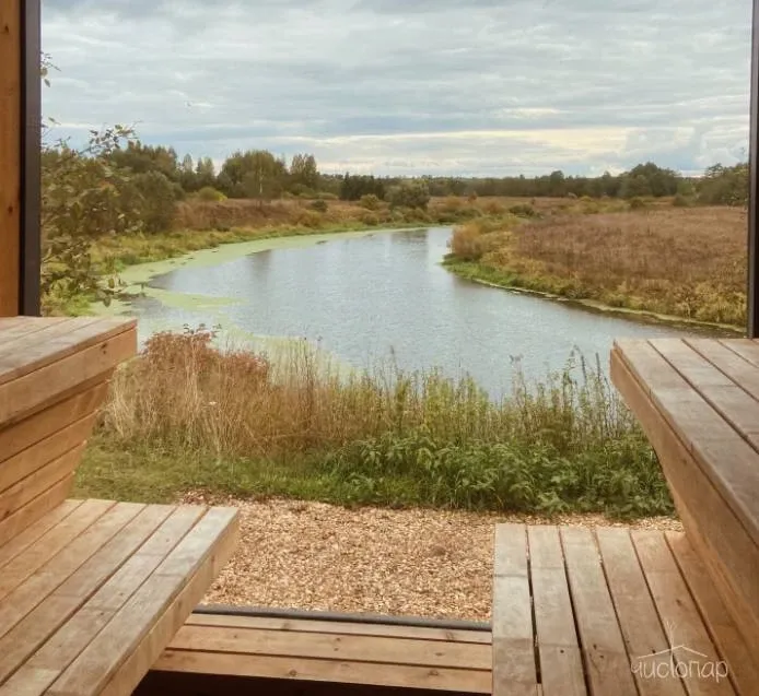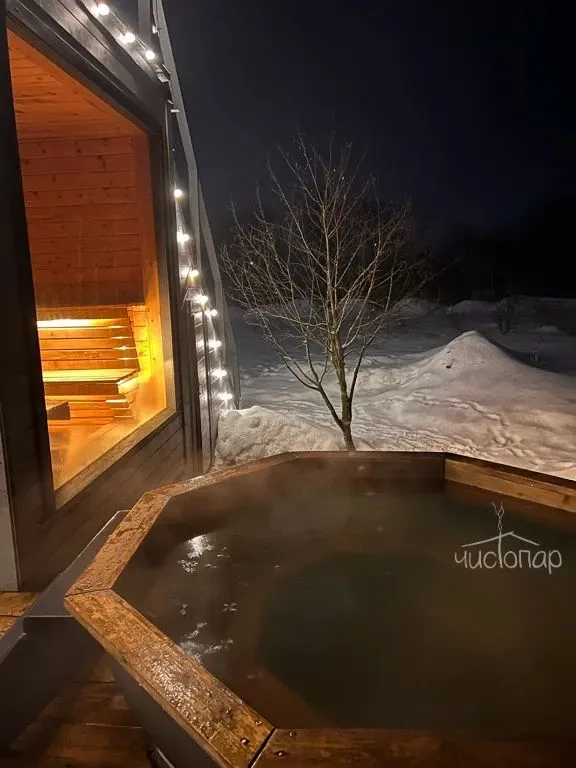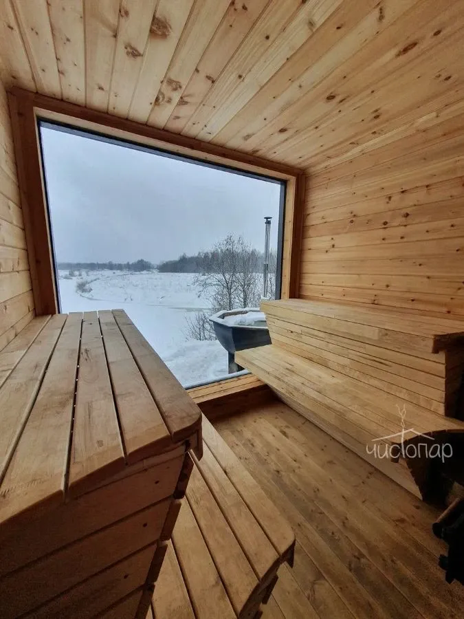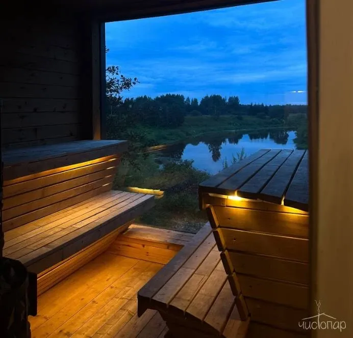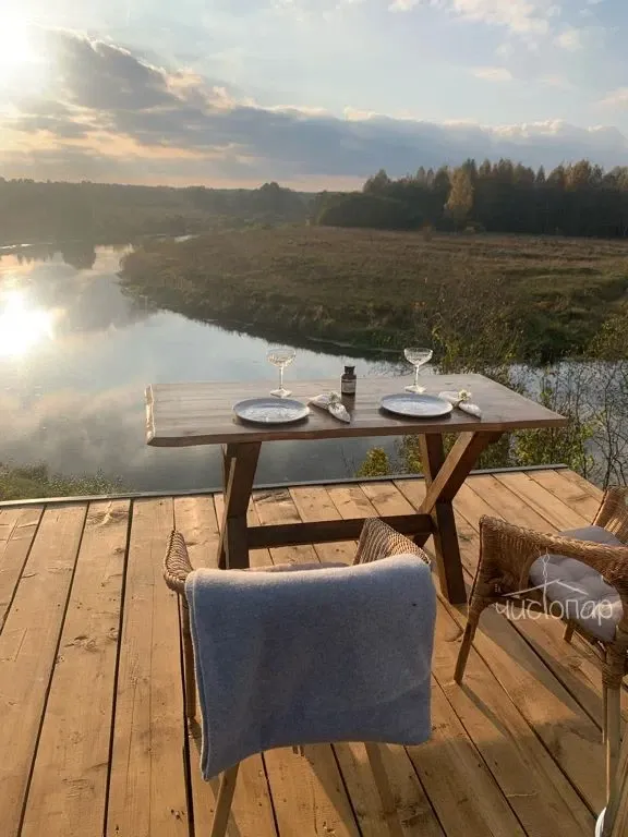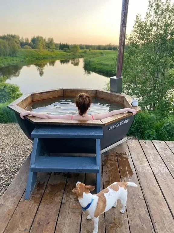 В глэмпинге есть панорамная баня с восхитительным видом на реку и закат, и горячий чан на открытом воздухе добавят отдыху незабываемых впечатлений.