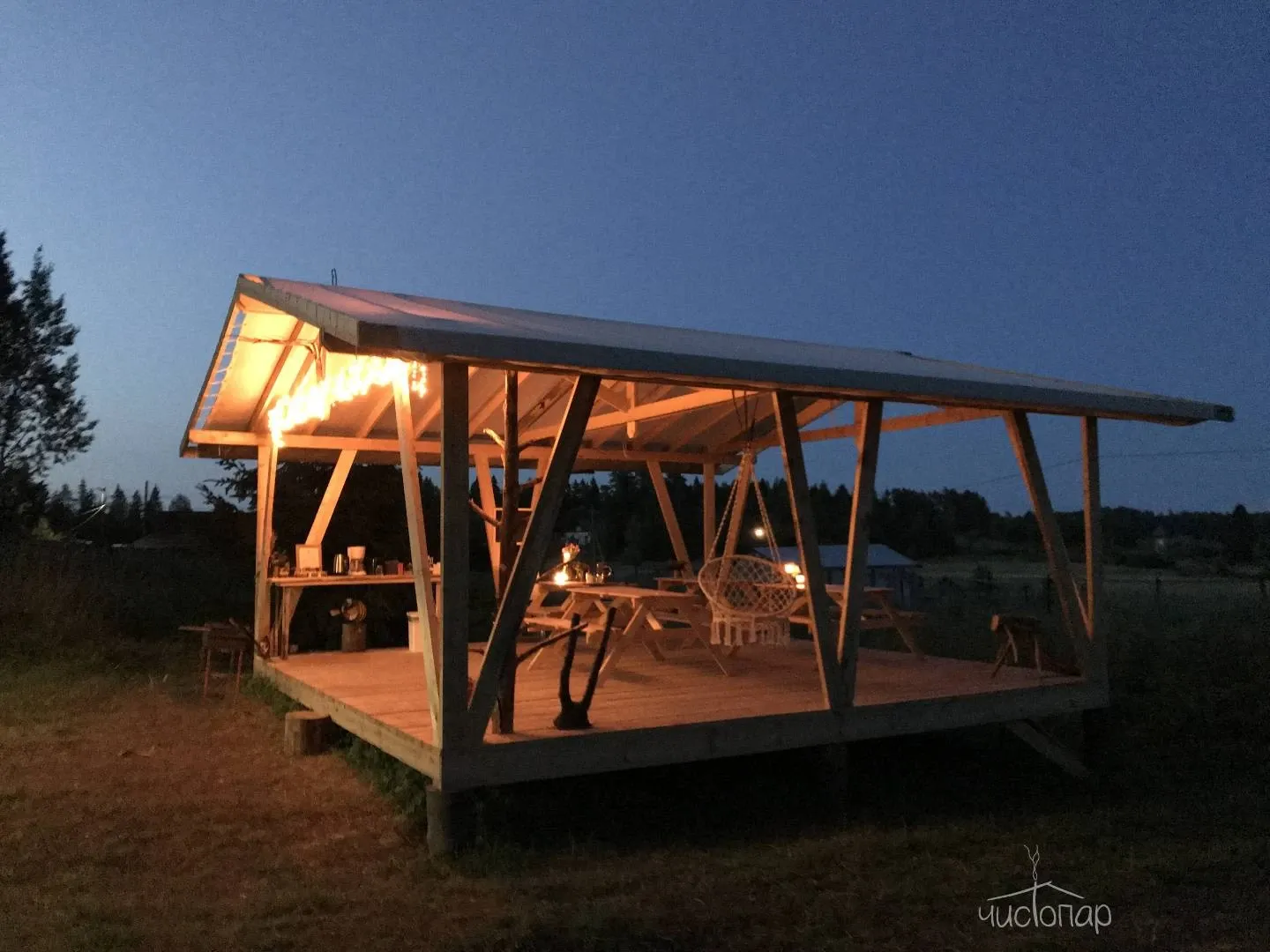 • Костровая зона. Общая костровая зона со скамейками для уютных вечеров в компании друзей.