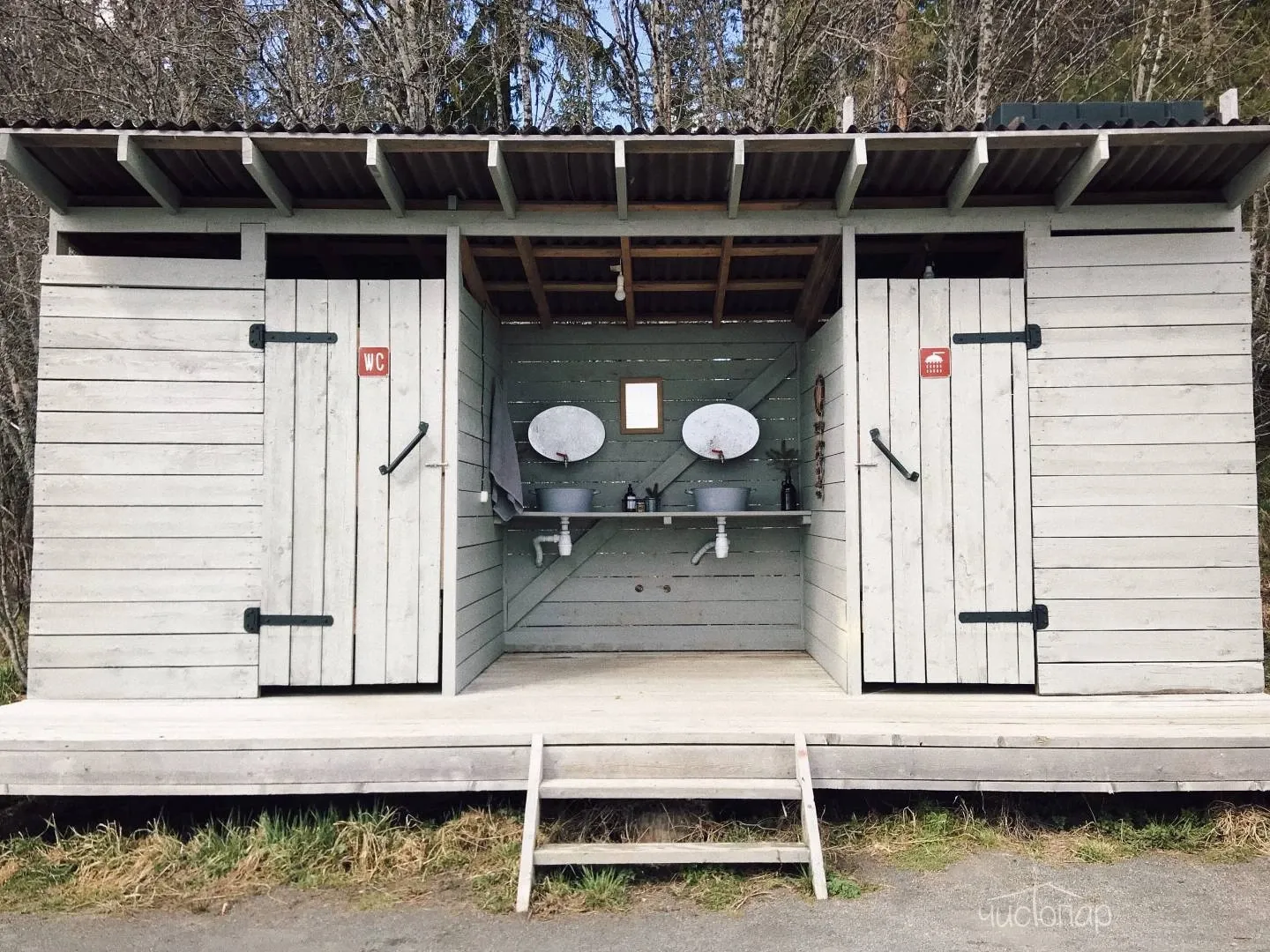 На территории лагеря есть общий санузел с душем, умывальниками и туалетом. В душе всегда есть тёплая вода. В шатрах есть полотенца.