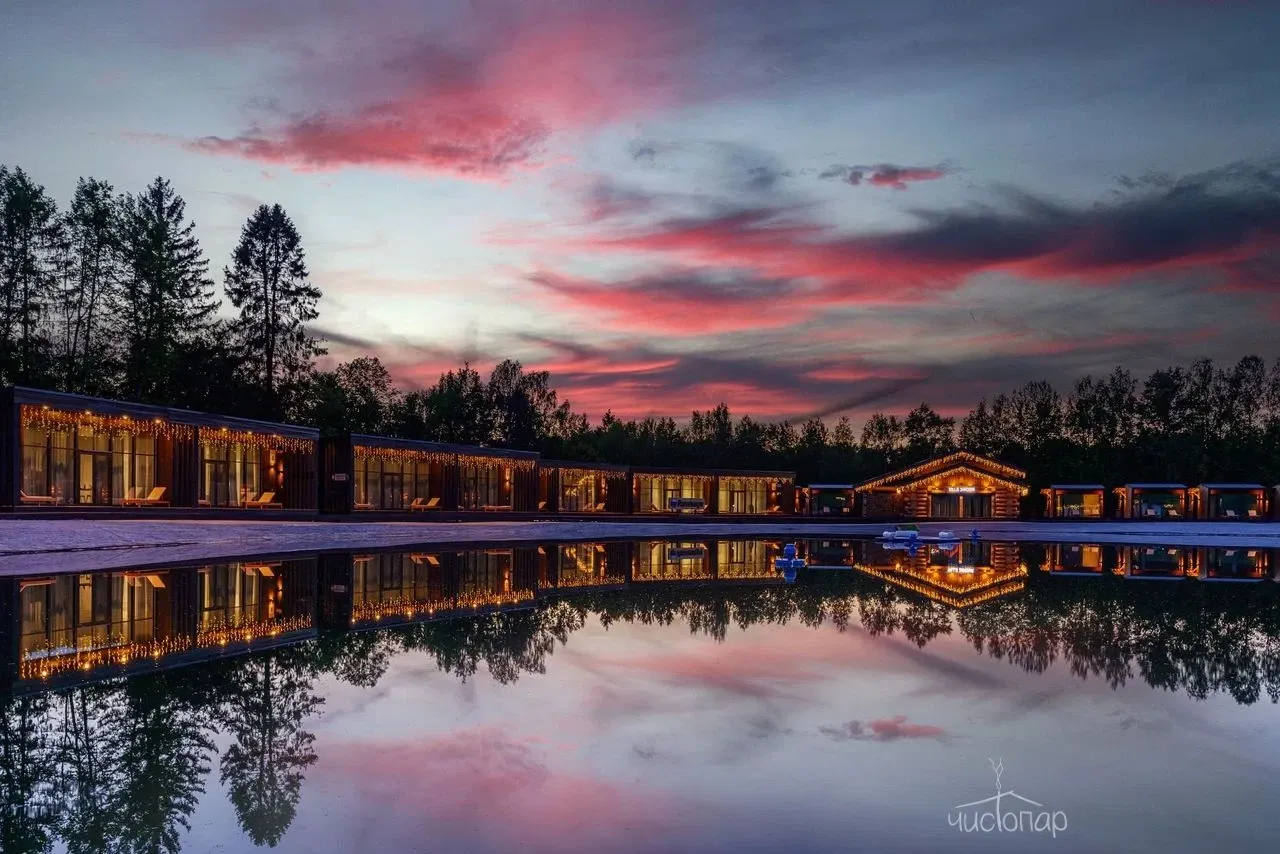 Живописная местность в непосредственной близости леса и собственного озера, комфортное пребывание в двухэтажном кедровом особняке, на первом этаже которого расположены парные и зона отдыха, а на втором кинозал и две спальные комнаты.